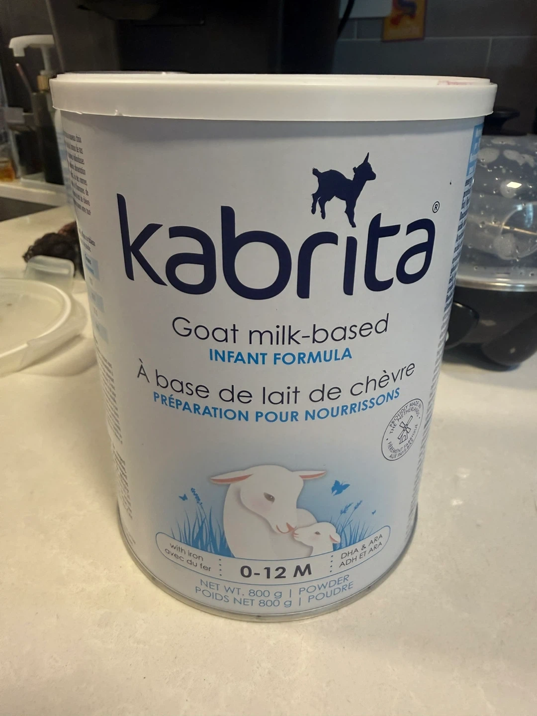 Kabrita goat milk-based infant formula. This can contains 800g of powder. It's suitable for babies aged 0-12 months. This formula is fortified with iron, DHA & ARA.