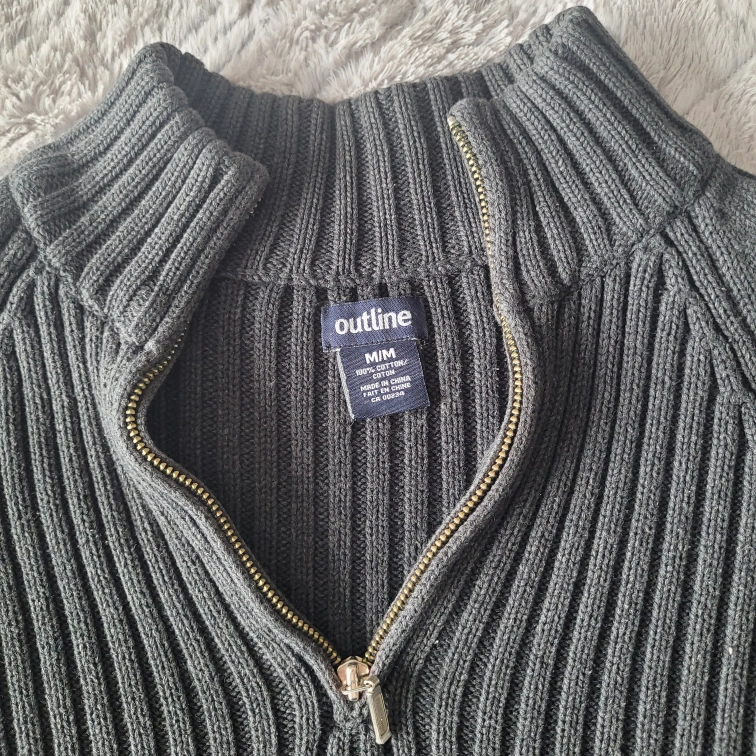 Men's charcoal grey ribbed sweater. 1/4 zip closure. Long sleeves. Like new condition