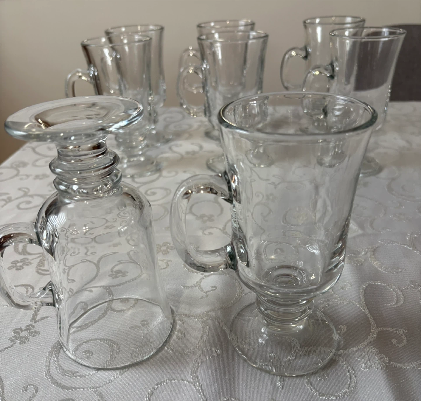 Set of 8 Glass Irish Coffee Mugs with Handles