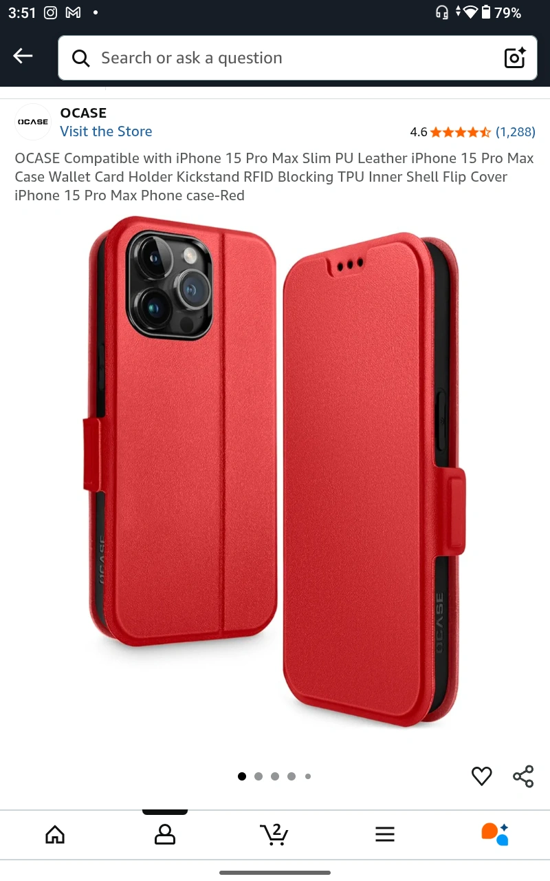Selling a red OCASE wallet case compatible with the iPhone 15 Pro Max. It's a slim PU leather case with a card holder, kickstand, and RFID blocking TPU inner shell flip cover. Perfect for keeping your phone protected and your cards organized! New