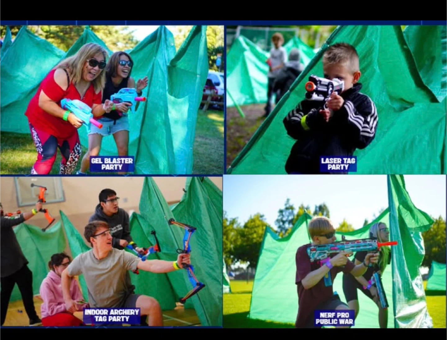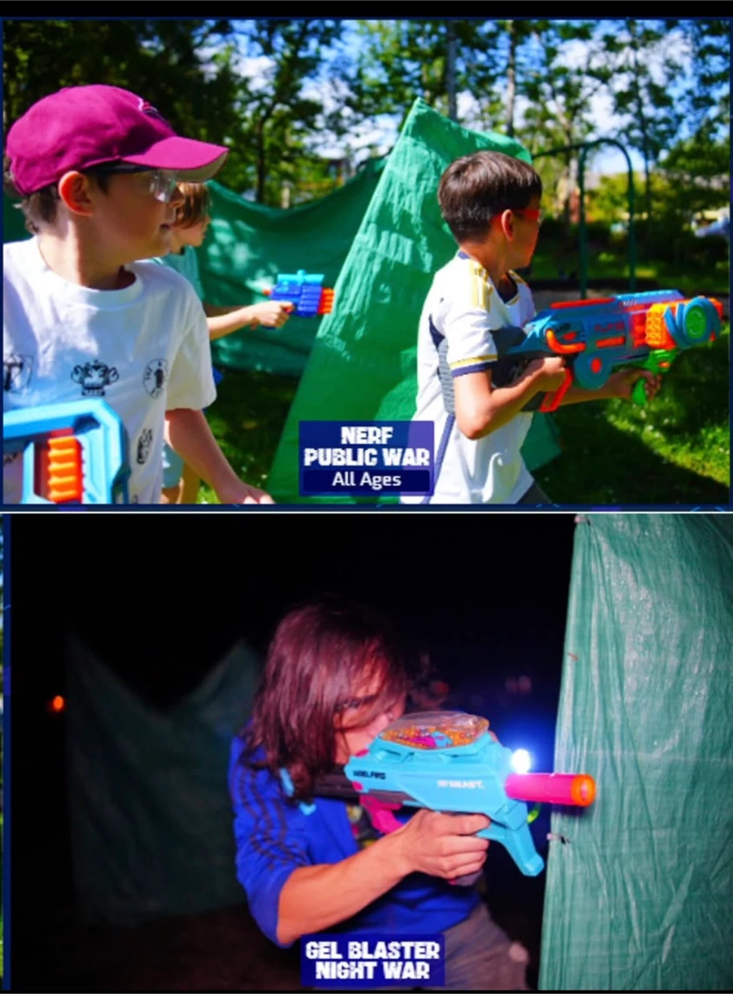 Get ready for some Extreme Nerf Wars! This is for parties and public wars, staffed and ready for any park. Gear is provided. There's Nerf for all ages and Nerf Pro for ages 13+! Join the mayhem!