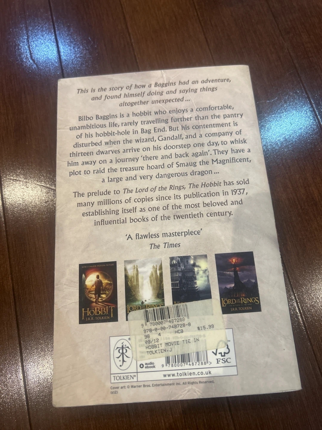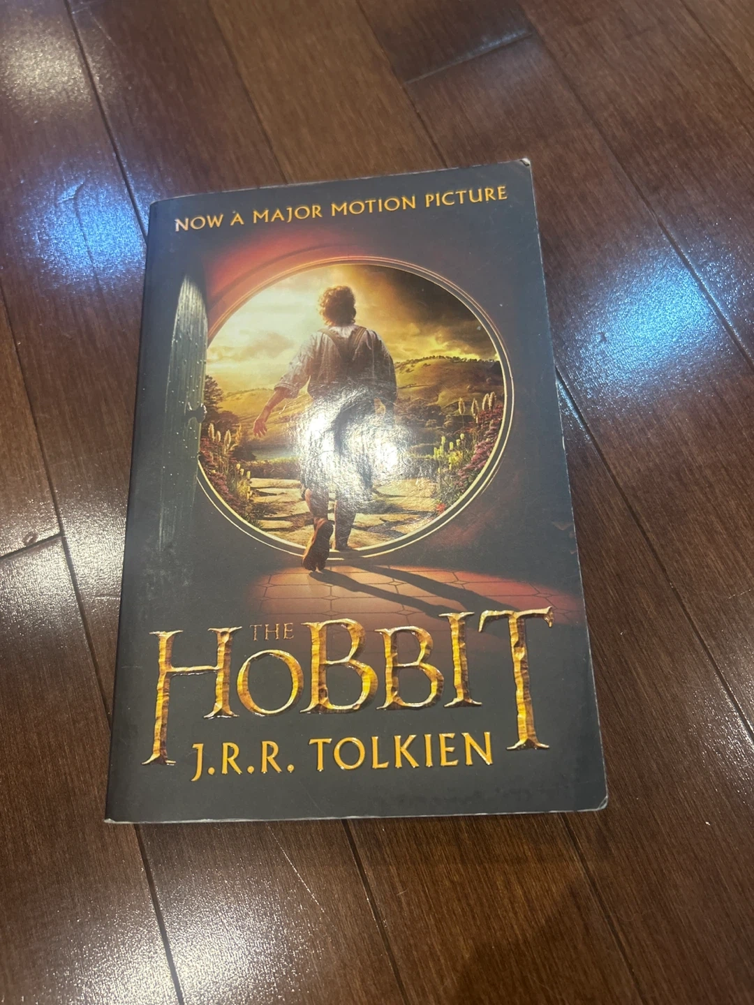 Selling a copy of The Hobbit by J.R.R. Tolkien! This book tells the story of Bilbo Baggins and his adventure. A great read for anyone interested in fantasy!