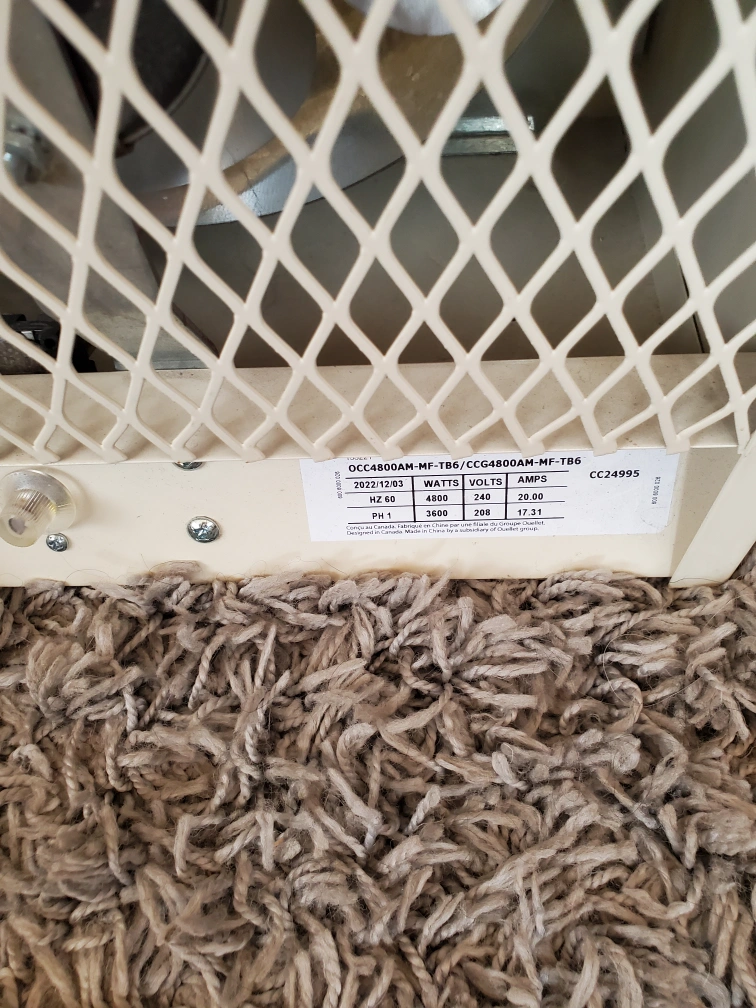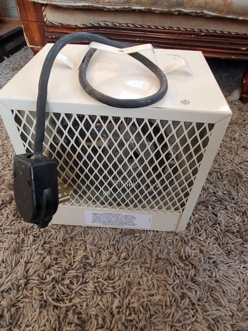 Electric heater, good condition. Features a metal mesh front and power cord. Unit is off-white in colour. pick up Inkster and main