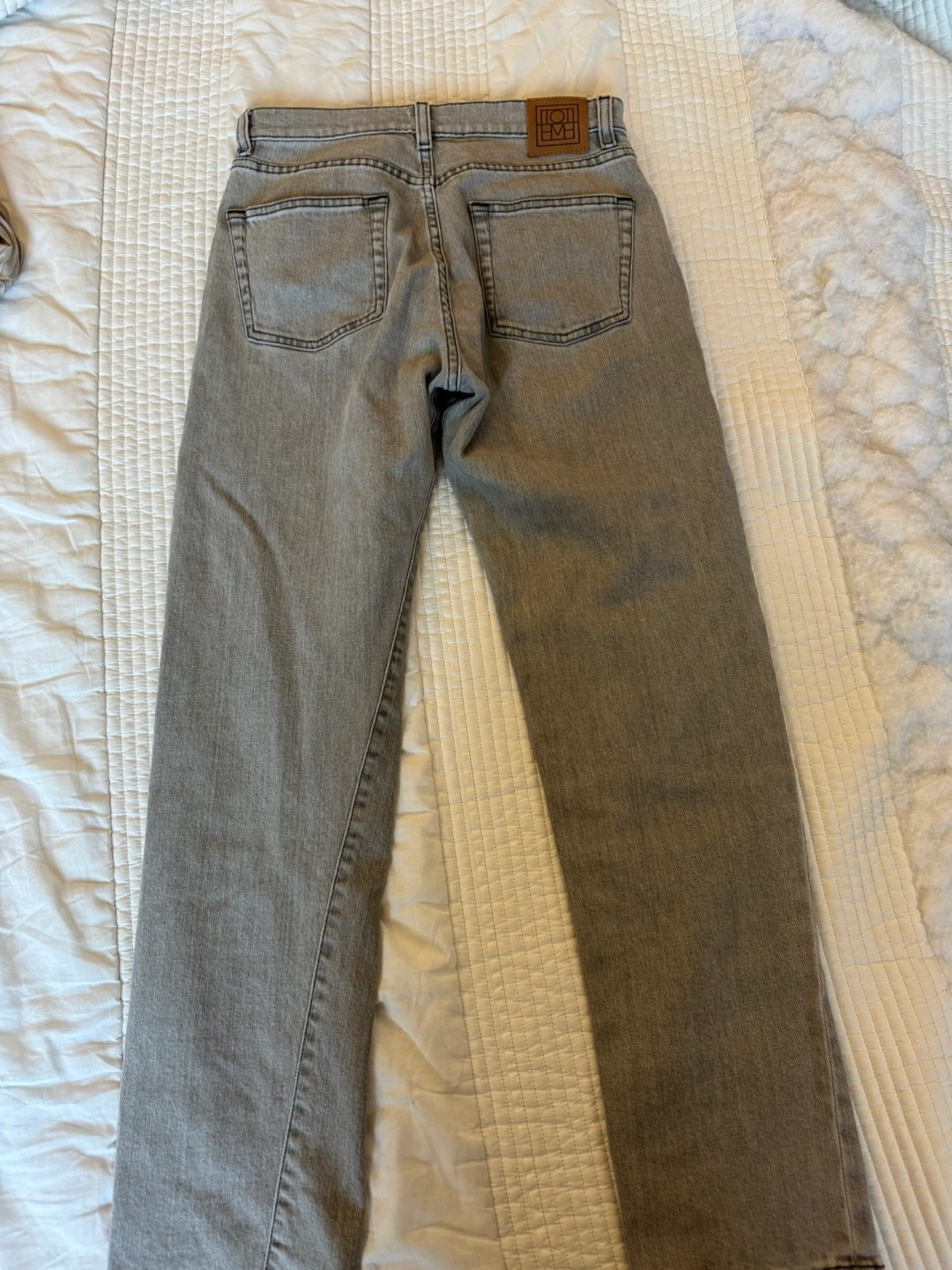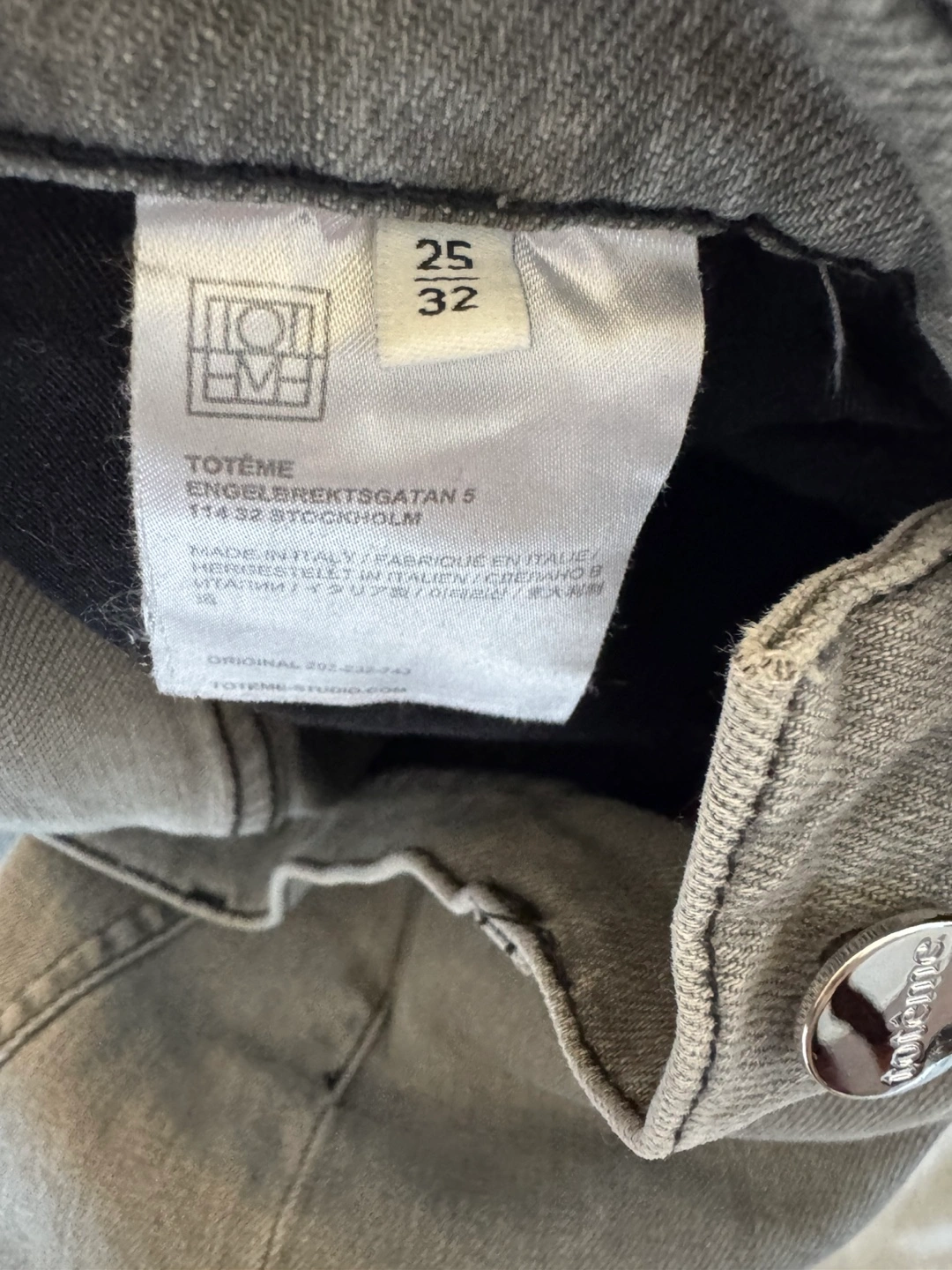 Selling a pair of Toteme jeans in size 25/32. They are a stylish light gray color and in good condition. The jeans are made in Italy and feature a classic design. Perfect for adding a touch of sophistication to your wardrobe!