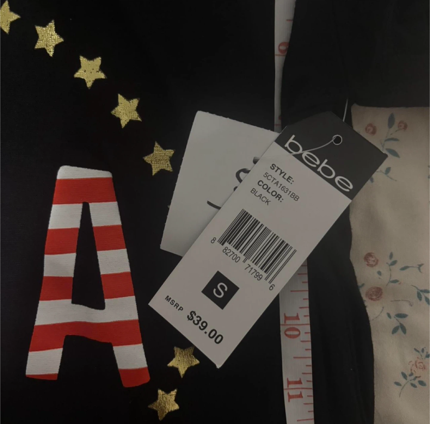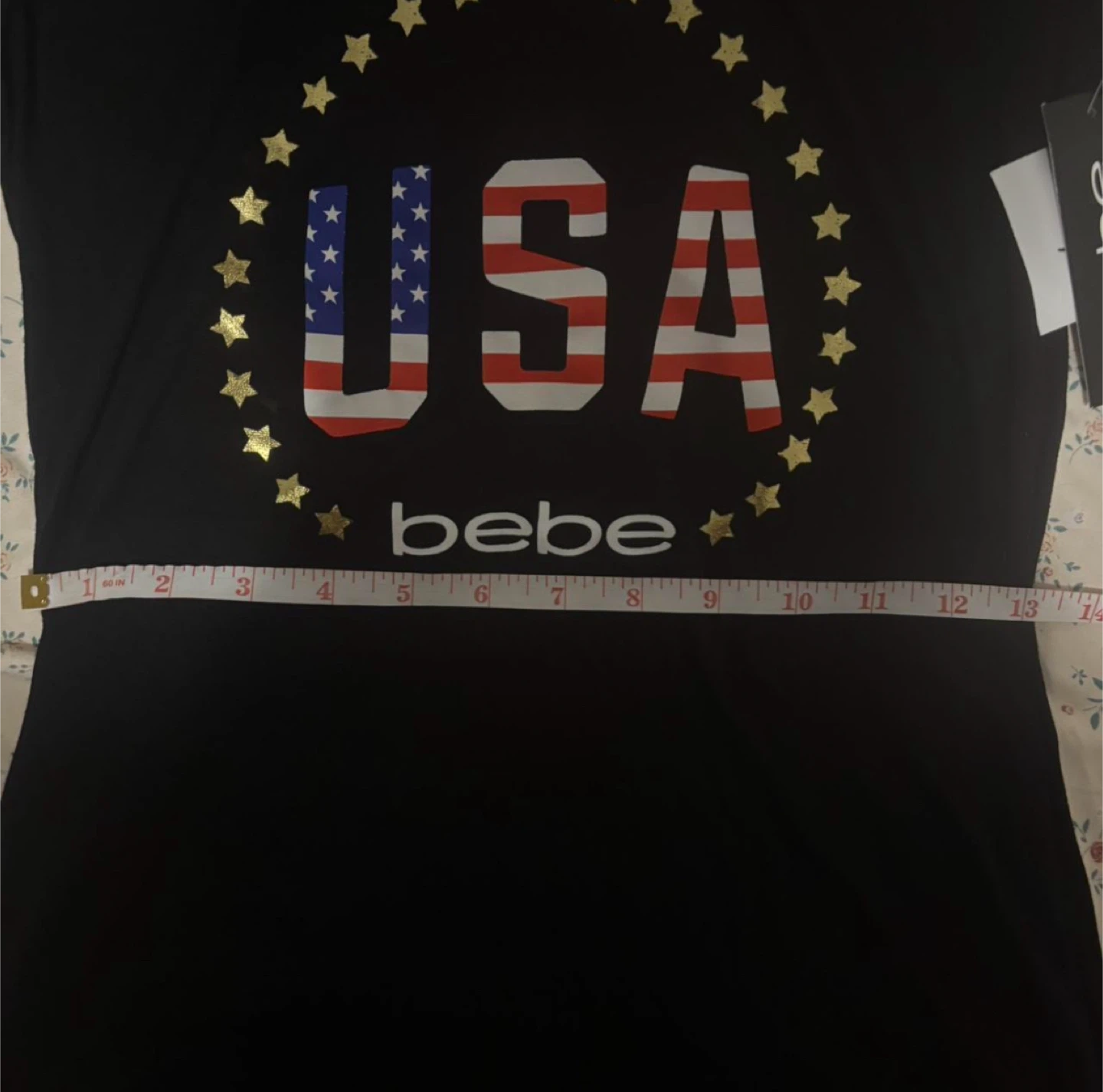With tags This is a black Bebe t-shirt with a USA graphic design. It's a size small. The shirt is made from a soft material. #y2k#bebe#aeropostale#hollister#fitch