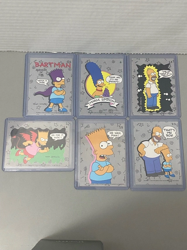 Own a piece of Springfield with these vintage The Simpsons trading cards! The set features iconic characters like Bartman, Marge, Homer, and Bart, all in classic Matt Groening style. Each card captures a fun moment from the show. They are sure to bring a touch of nostalgia to any collection. Condition: Used - Good. For Sale By: Owner. Cash accepted.