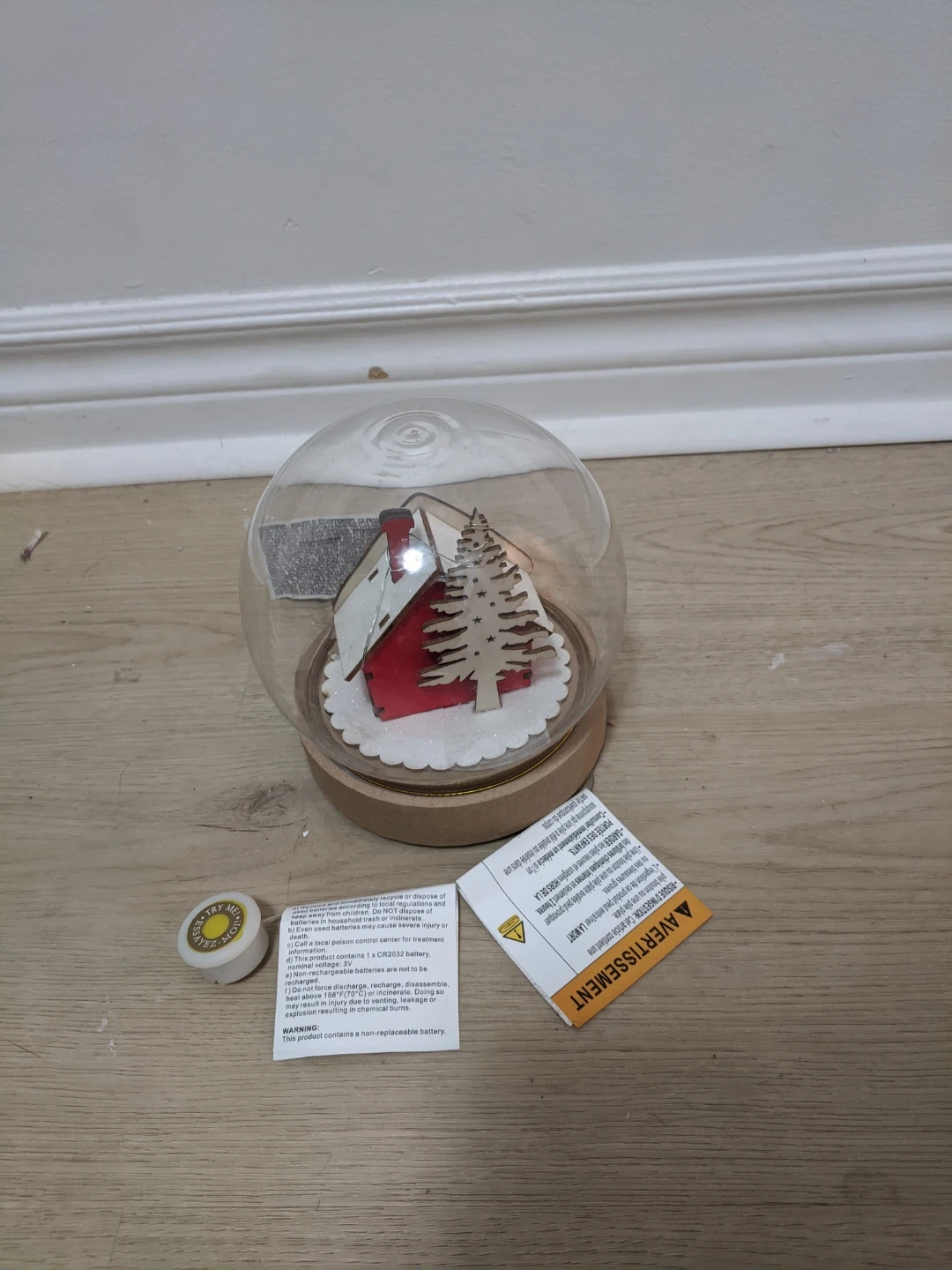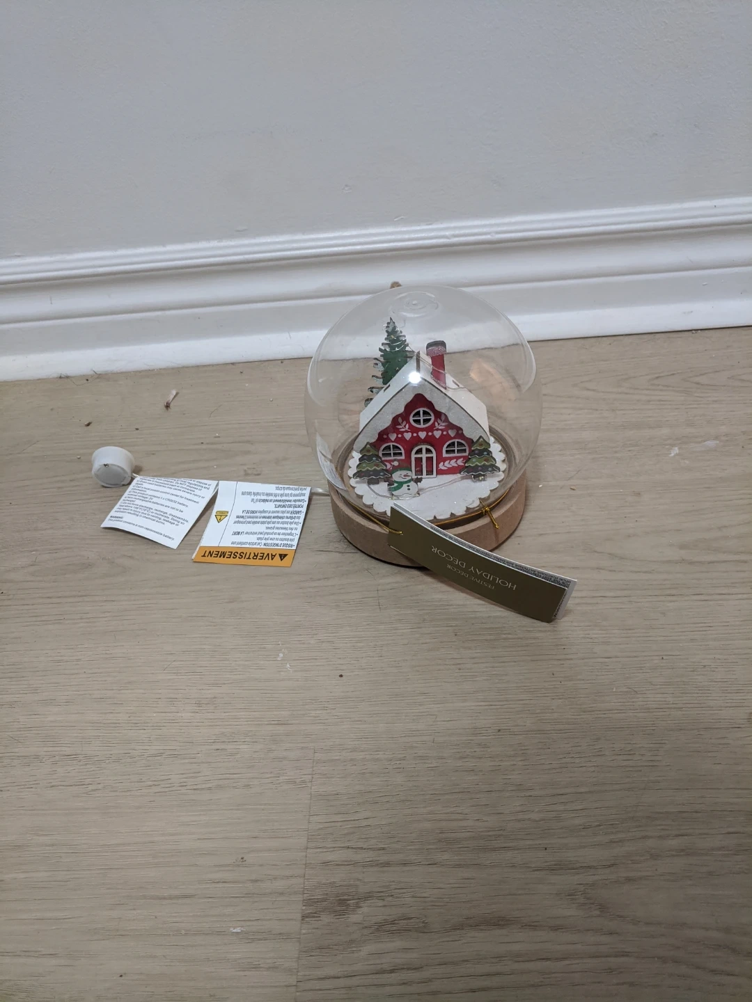 Festive indoor snow globe featuring a cute house and tree. Requires 2 AAA batteries, included. Perfect for adding a touch of holiday cheer! Pick up at 195 Merton Street Toronto or pick up at subway station Davisvill. And I can deliver it to your house but you need to pay me another $3. Thanks.