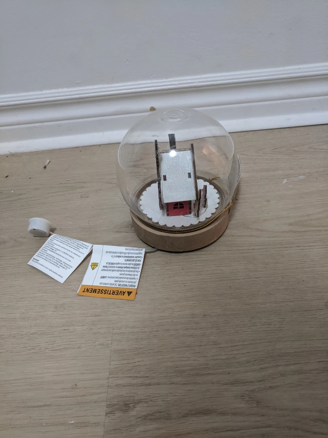 Festive indoor snow globe featuring a cute house and tree. Requires 2 AAA batteries, included. Perfect for adding a touch of holiday cheer! Pick up at 195 Merton Street Toronto or pick up at subway station Davisvill. And I can deliver it to your house but you need to pay me another $3. Thanks.