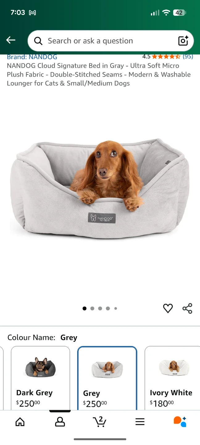 Selling a NANDOG Cloud Signature Bed in grey. It's made of ultra soft micro plush fabric with double-stitched seams. This modern and washable lounger is perfect for cats and small to medium dogs!