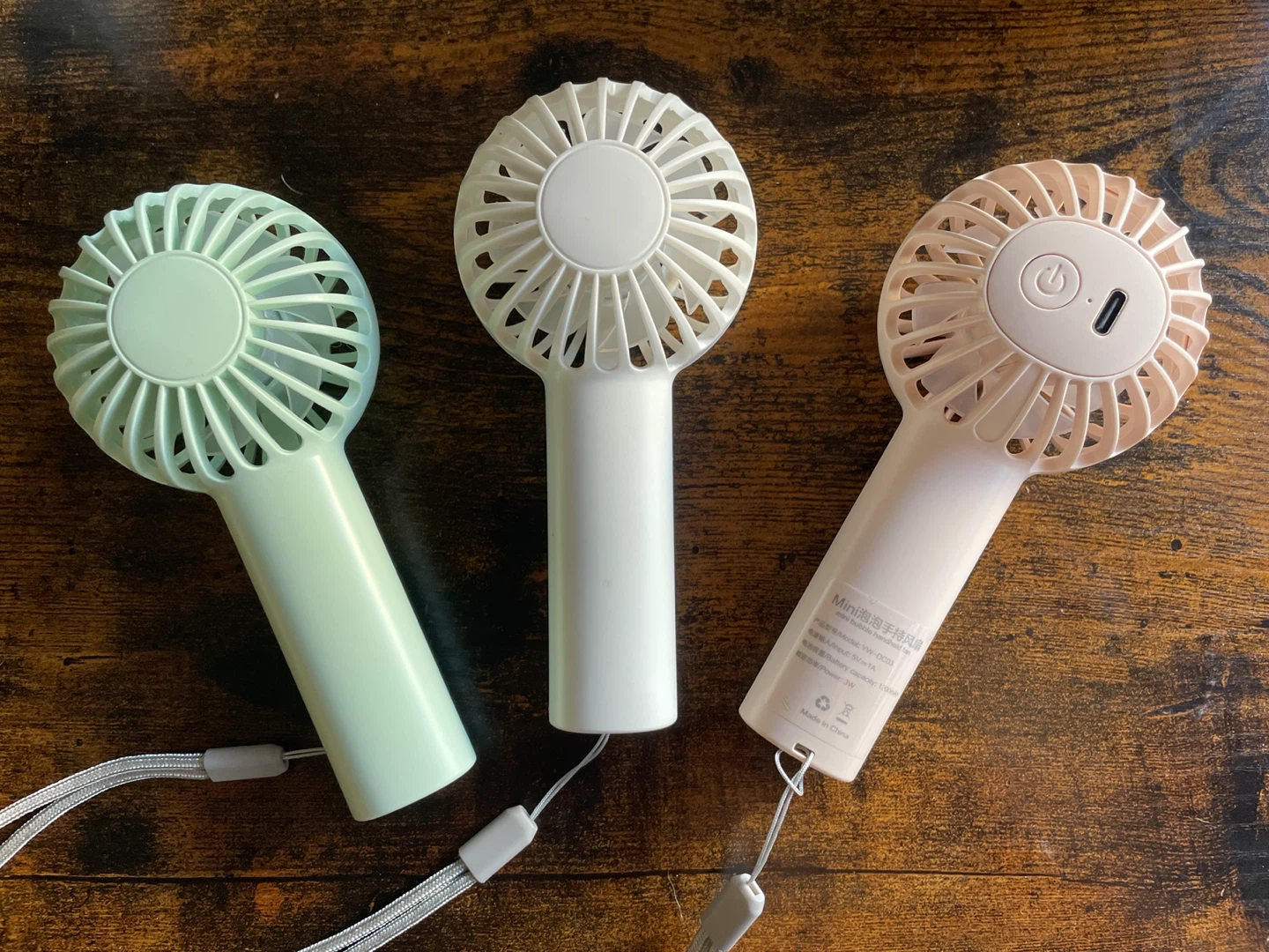 Check out these adorable mini bubble handheld fans! They're perfect for staying cool on the go.