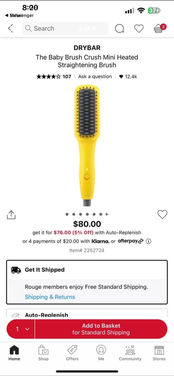 Selling a DRYBAR Baby Brush Crush Mini Heated Straightening Brush in great condition - straightening iron and paddle brush in one.