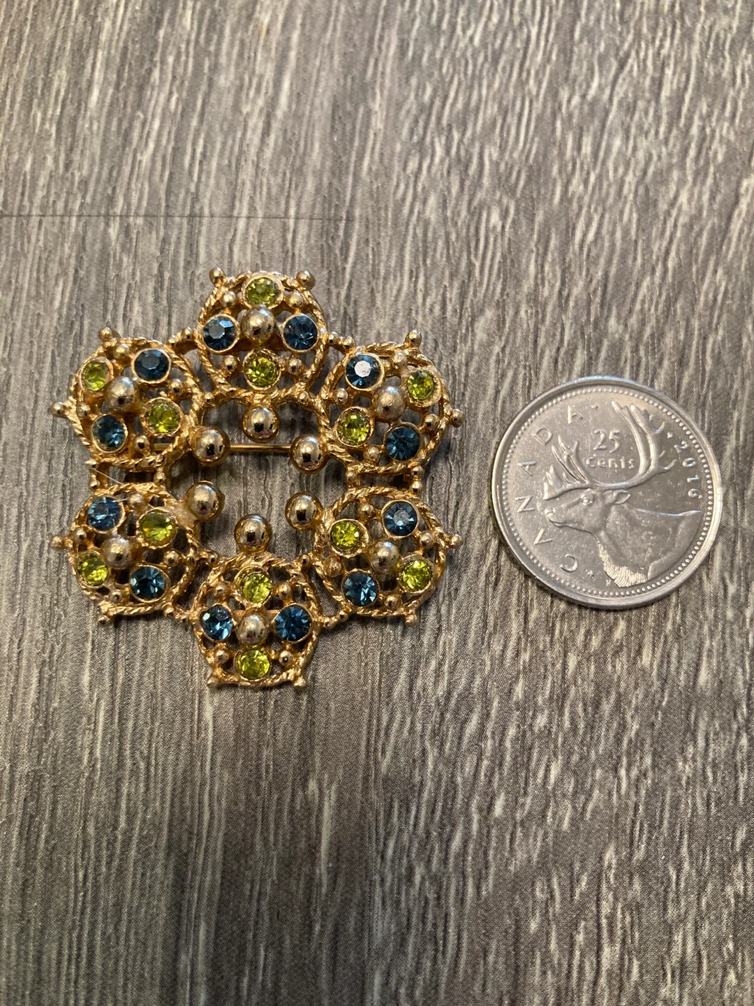 Gold-tone Brooch with Blue and Green Stones