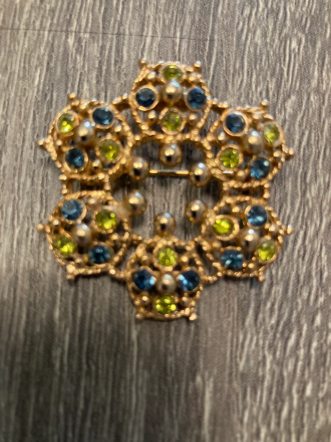Gold-tone Brooch with Blue and Green Stones