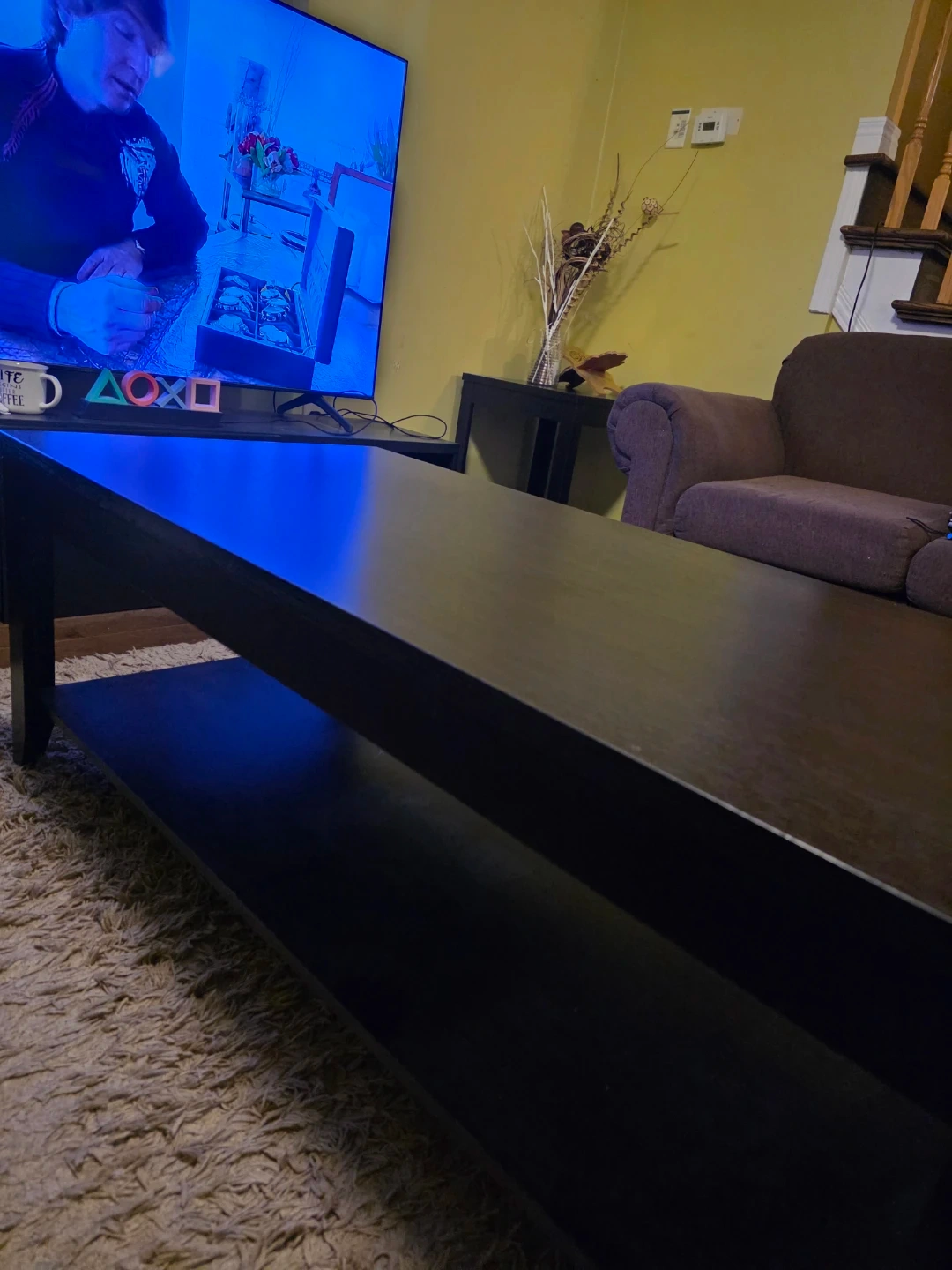 This dark brown coffee table has a sleek, modern design. It features a lower shelf for extra storage. A good size for most living rooms! (Open to offers im moving out of country)