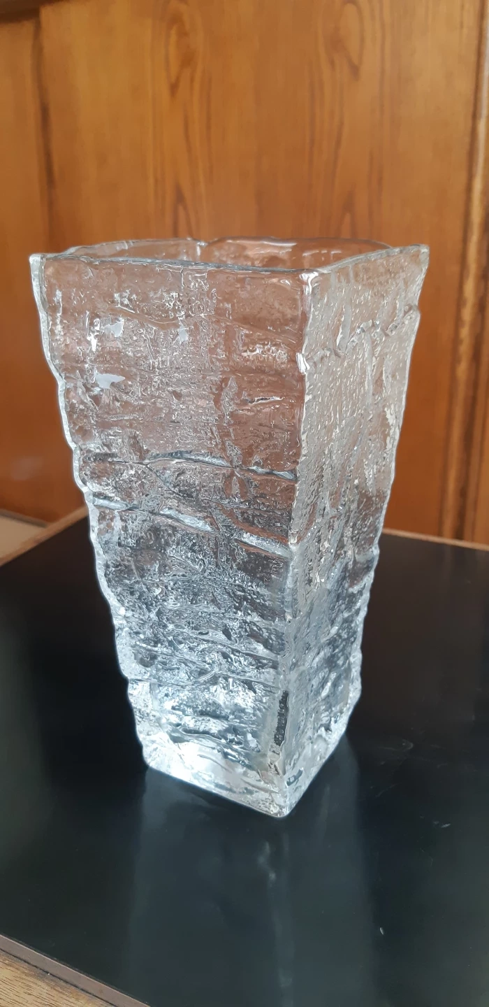 This is a vintage Scandinavian textured glass vase.