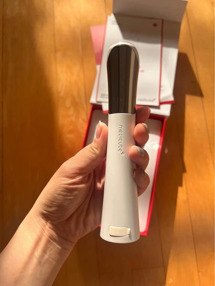Minimise large pores and improve your skin's texture with the MEDICUBE AGE-R ATS Air Shot, a needle-free dermapen tool that gently exfoliates your skin. This innovative device uses electric micro-needling technology to create non-damaging passageways in the skin, increasing the absorption of skincare products.