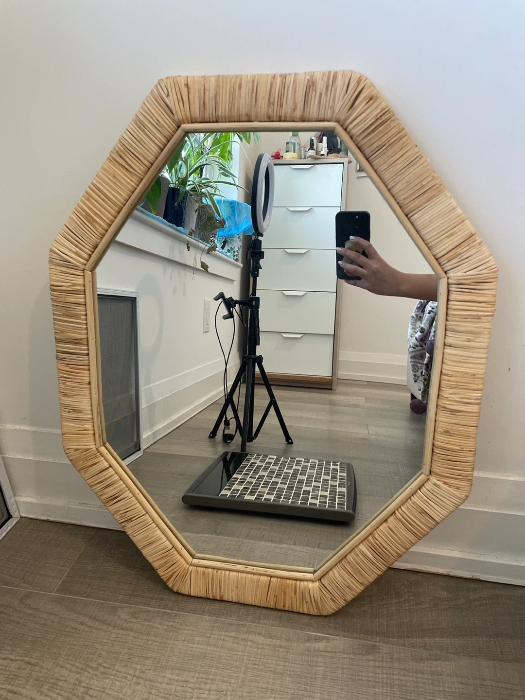 85Selling a lovely octagon-shaped mirror from Tiger Lily Vietnam! It's in great condition and would look fantastic in any room. The frame has a natural, woven texture that adds a touch of warmth to your space. Size: 60 CM*45 CM
