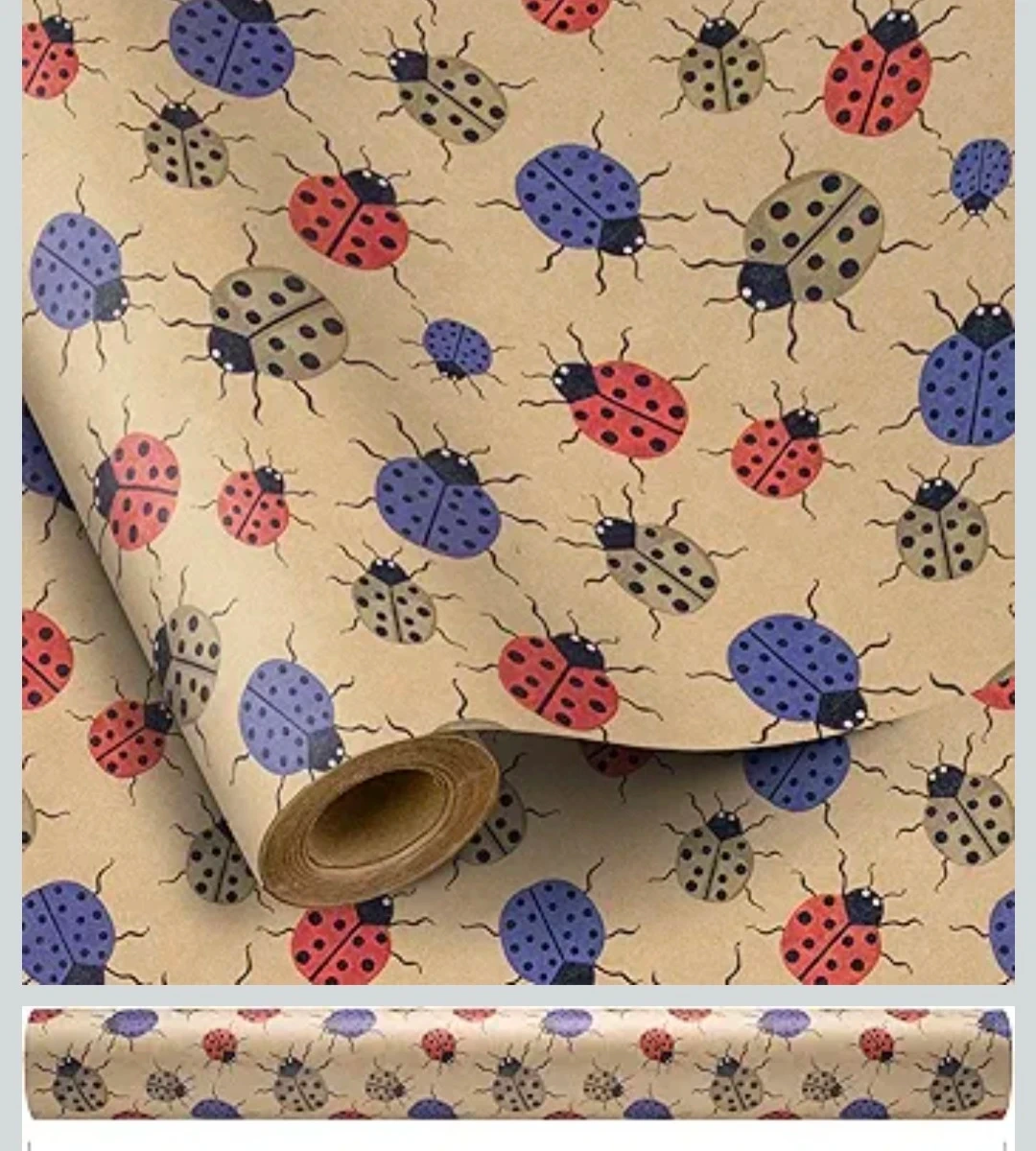 Ladybug Print Wrapping Paper Roll. New. Multi-colored design for Kraft, Gift Wrap, great for Birthday, Party, Baby Shower, Holiday. Perfect for adding a touch of whimsy to your gifts.