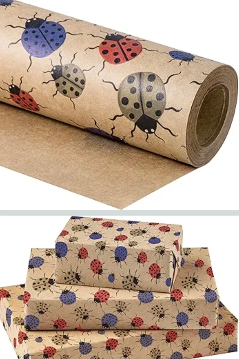Ladybug Print Wrapping Paper, Kraft Gift Wrap 17"X196"