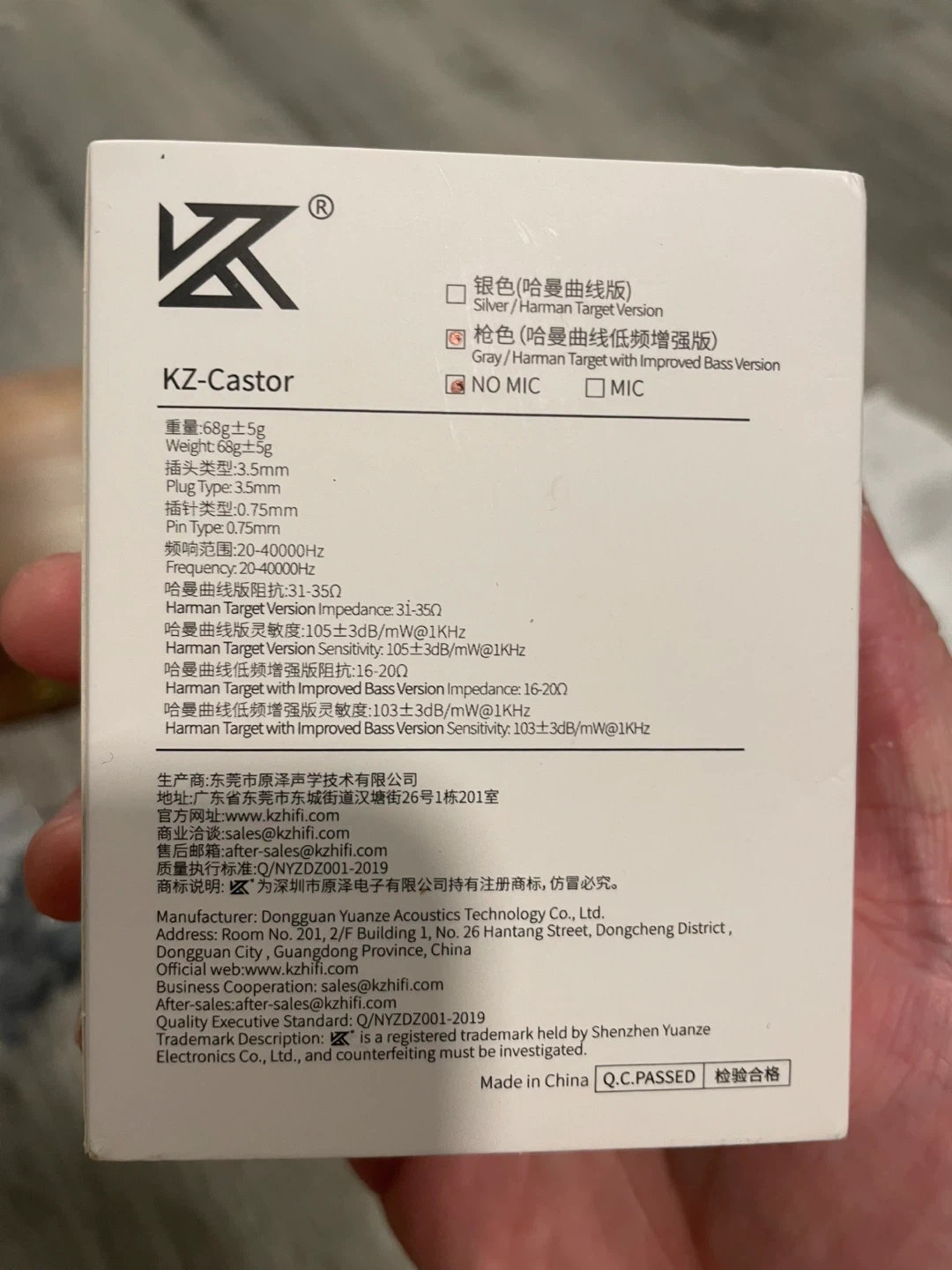Selling a pair of KZ Castor earphones in the Gray/Harman Target version with improved bass. They come in the original box.