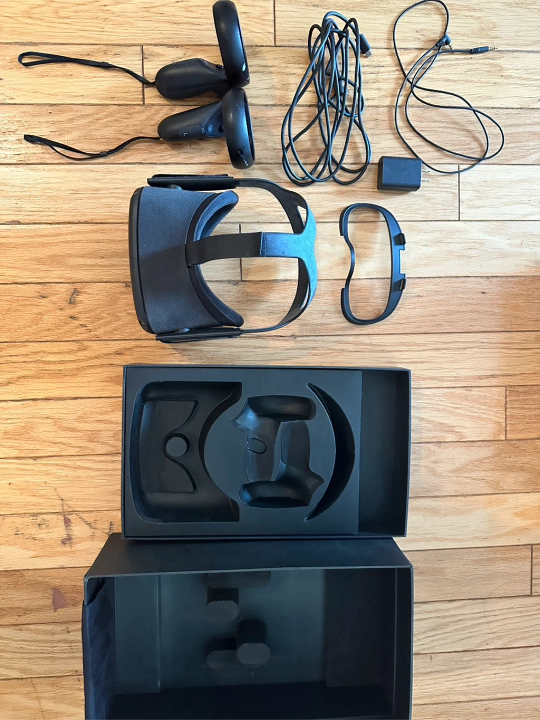 38Oculus Quest 1 Works perfectly. The controllers have some scratches. Everything shown in the photos is included, along with the box. Prefer pickup in Finch–North York area.