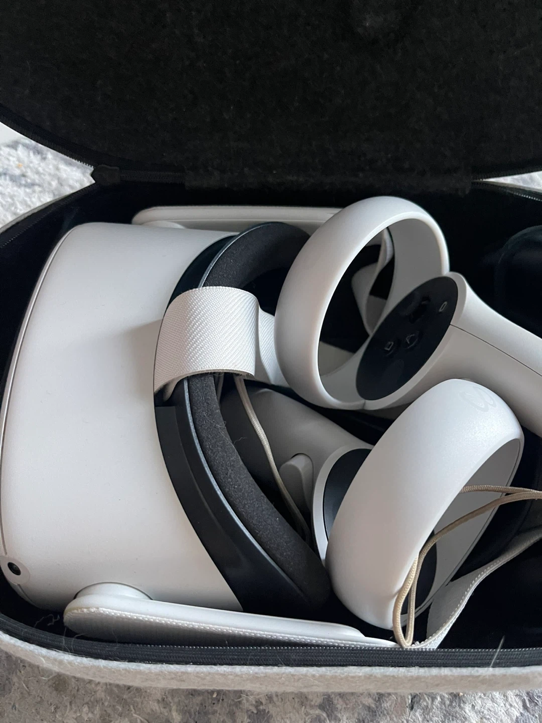 161Oculus Quest 2 VR headset It's in so great condition comes with the original box all the included components. Box + Case + Link cable Ready for you to dive into virtual reality adventures! 🤍 will clean & sanitize one more time before handing over , if not too much lowering and resasonable price offer then it’s negotiable