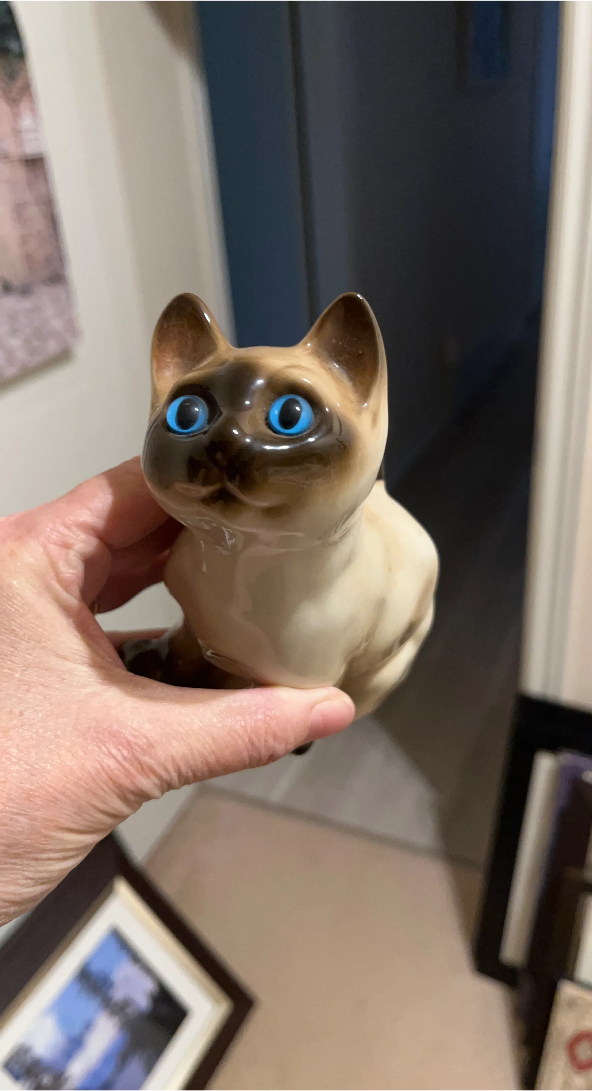 Ceramic Siamese Cat Figurine with Blue Eyes