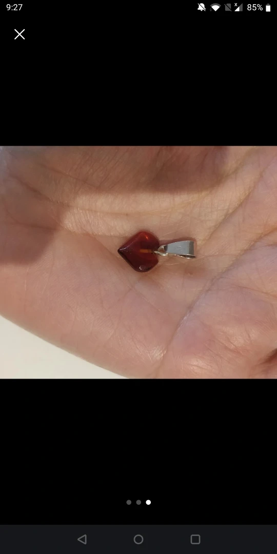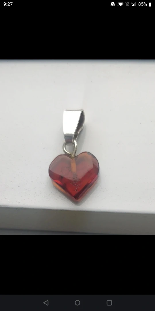 This is a lovely heart-shaped pendant with an amber-coloured stone. It features a silver-tone bail for attaching to a chain. It's a sweet accessory for everyday wear.
