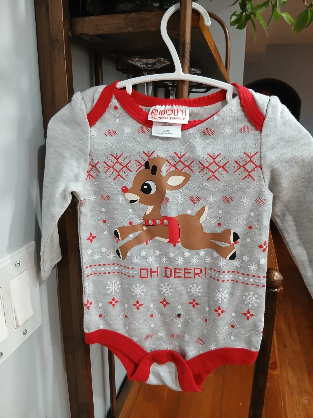 Buy & SellRudolph the Red-Nosed Reindeer OnesieRudolph the Red-Nosed Reindeer Onesie$5A cute Rudolph the Red-Nosed Reindeer onesie! It features a fun design with Rudolph and festive snowflakes. Perfect for the holidays!ConditionLike newAge6-12 monthsWHERE TO MEETPitt MeadowsView MapSELLERverifiedTrishPitt Meadows731 review0 chats·0 favorites·2 viewsSEND CHAT TO SELLERHi Trish! I’m interested in your listing.Hi Trish! I’m interested in your listing.Get the Karrot app to chatSign In to chat