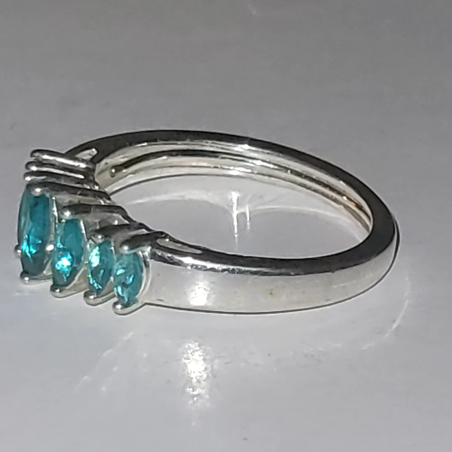 Sterling Silver Ring with BlueGreen Marquise Stones -size 7.5