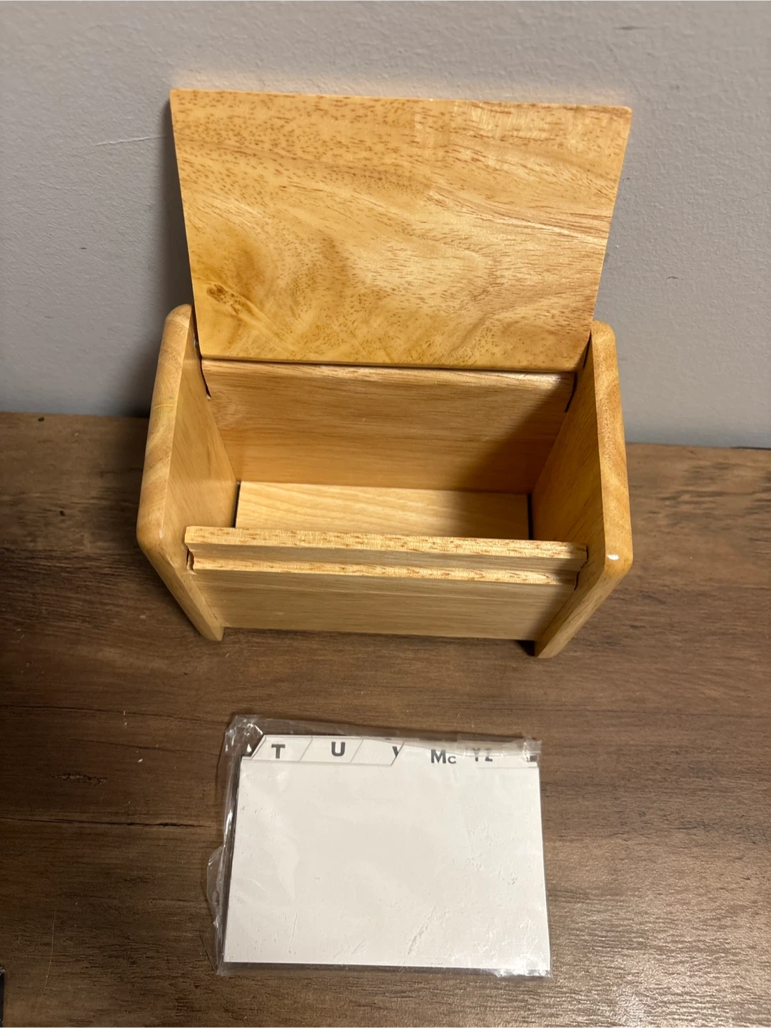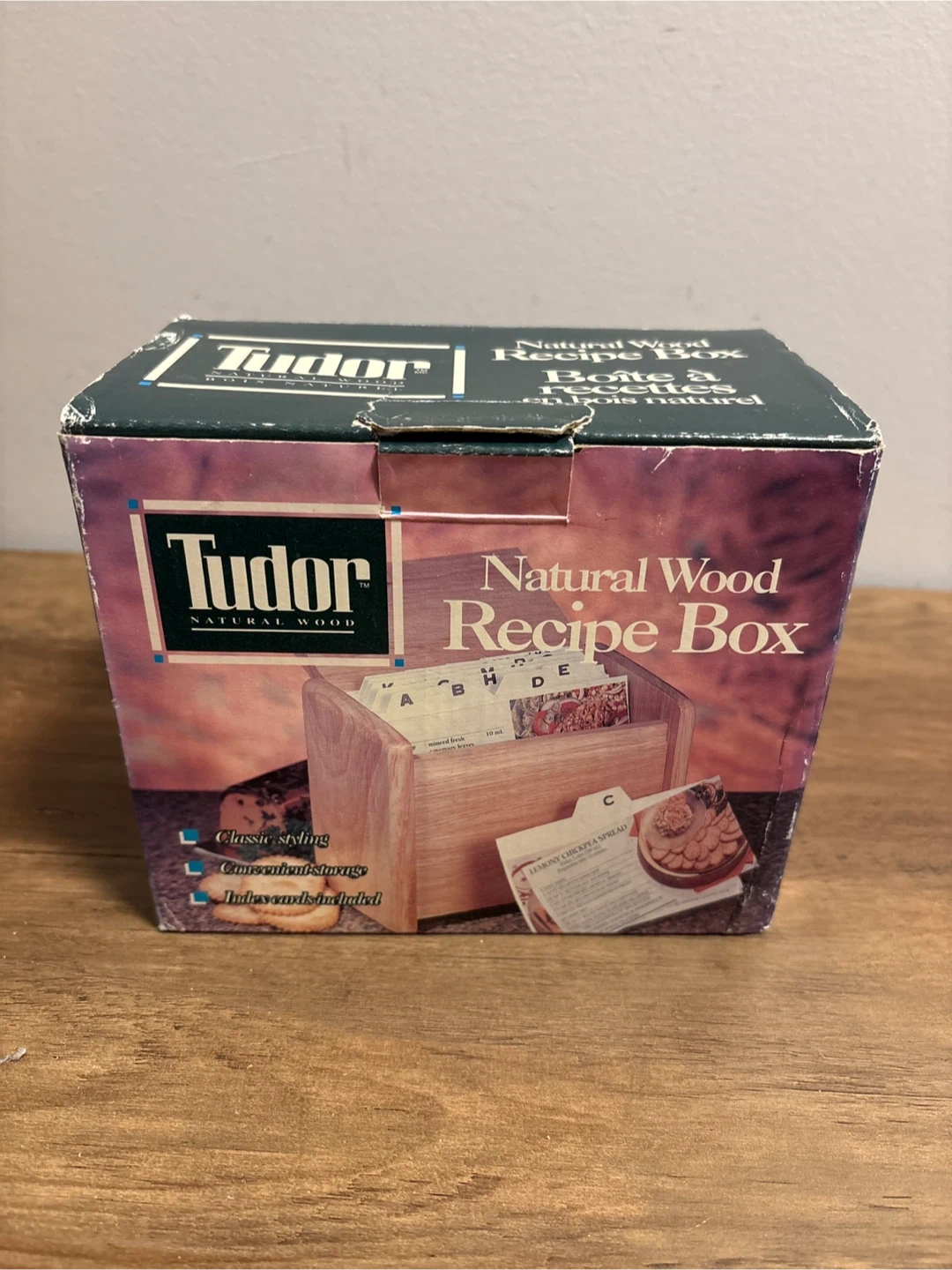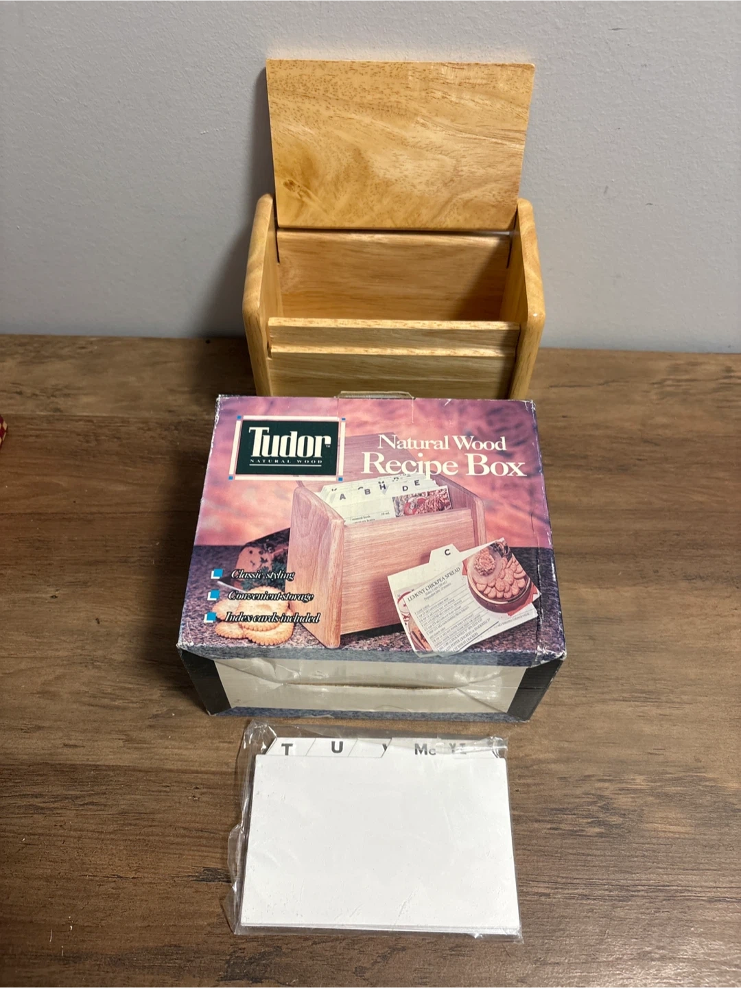 Selling a Tudor Natural Wood Recipe Box! It features classic styling and convenient storage. Includes index cards, too. The box is included!