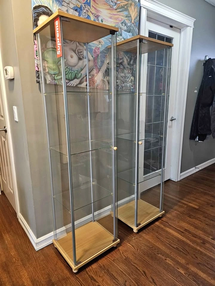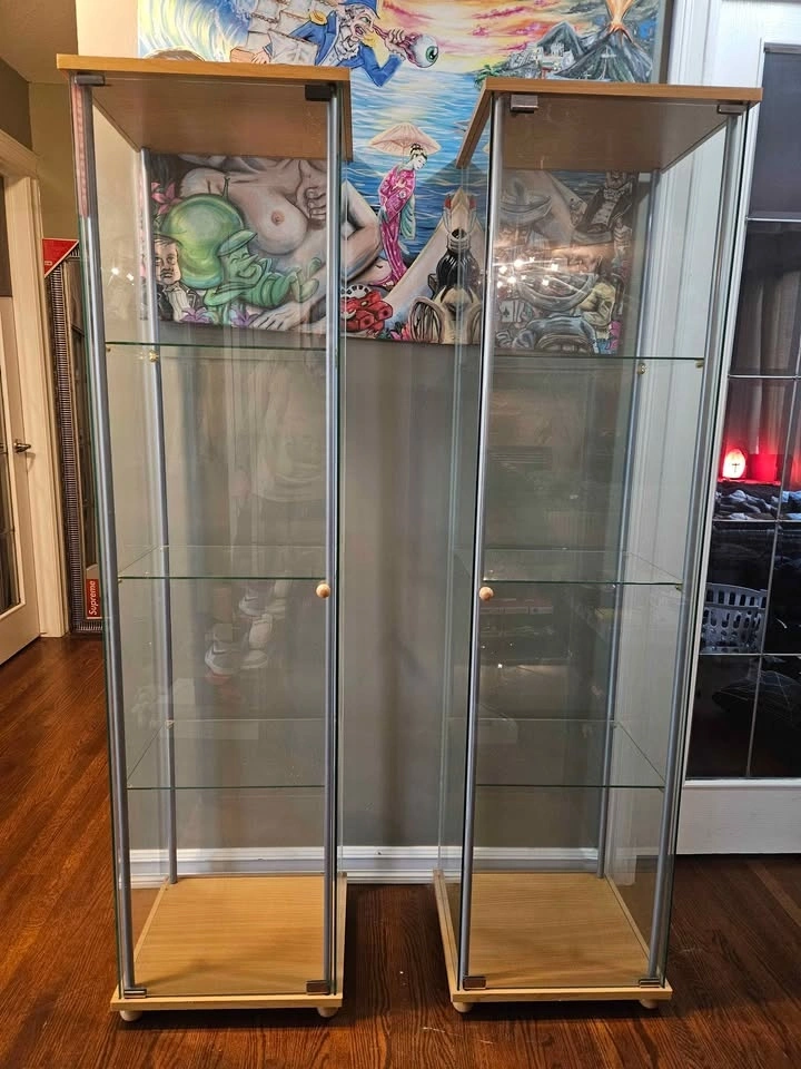Pair of Tall Glass Original Ikea Display Cabinets