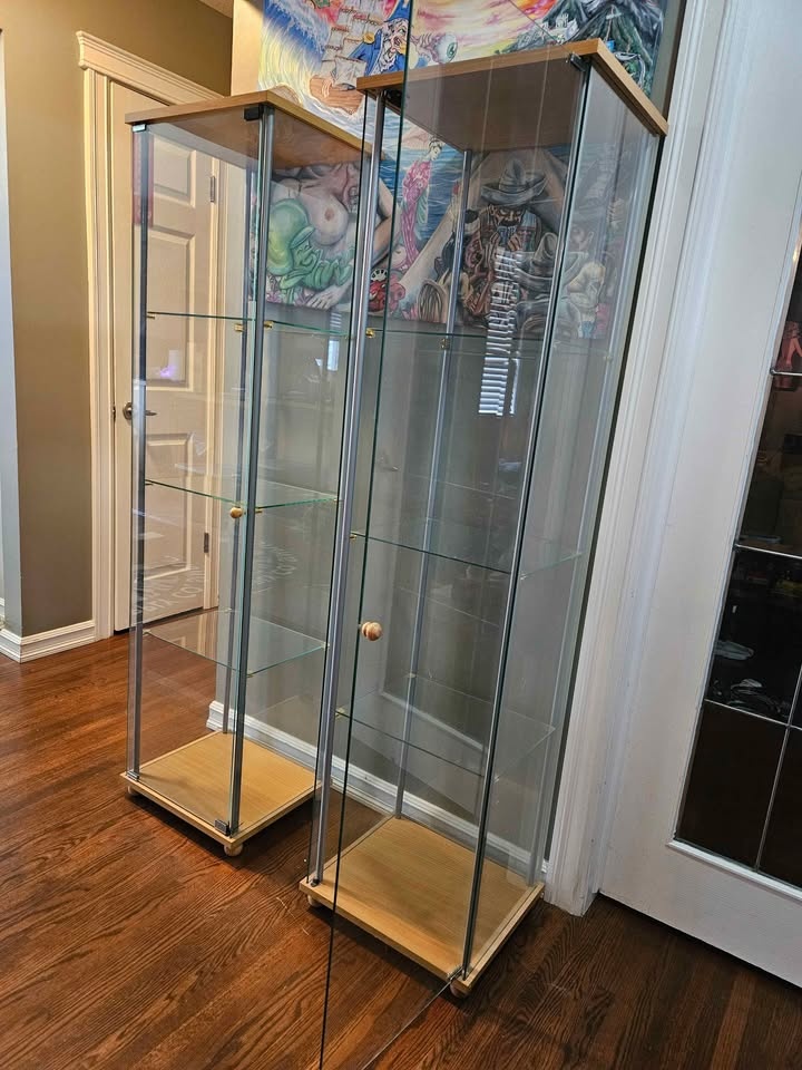 Pair of Tall Glass Original Ikea Display Cabinets