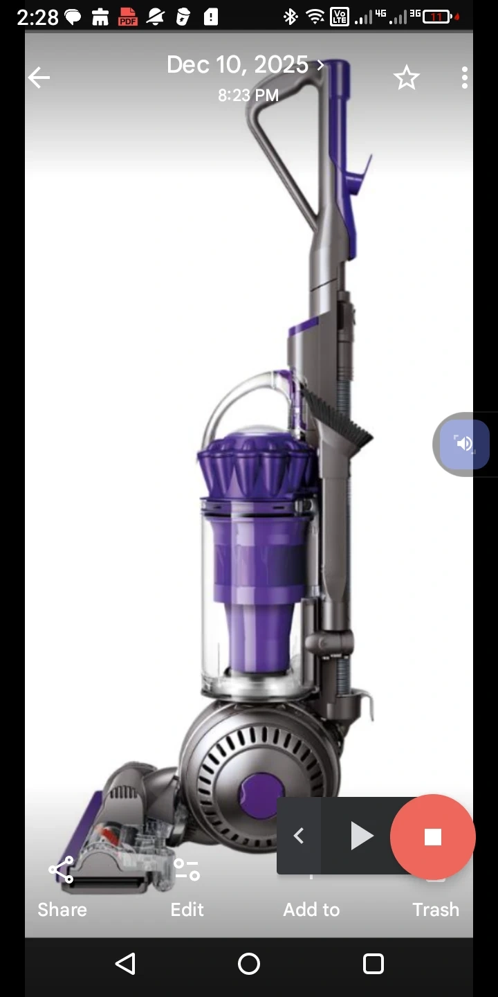 This is a Dyson Ball Animal upright vacuum cleaner. It's purple and grey. Comes with multiple cleaning attachments for various surfaces. Powerful suction for pet hair and deep cleaning!