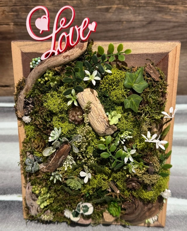 This moss wall art is a captivating display of nature's beauty, featuring vibrant green moss, delicate white flowers, and intricately arranged pieces of driftwood within a rustic wooden frame and a charming 'Love' script, adding a touch of romance. This piece is ready to bring a touch of the outdoors into your space. I've seen similar moss art pieces selling on Kijiji for around $40-$60. I’ve priced this at $30 so it finds it’s new home. It's like having a little piece of the forest right on your wall! If the ad's still up, it's still available. Accepts cash and cashless payment. Owner selling. Curbside pickup available.