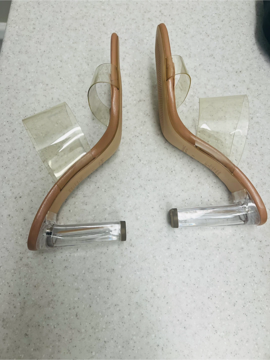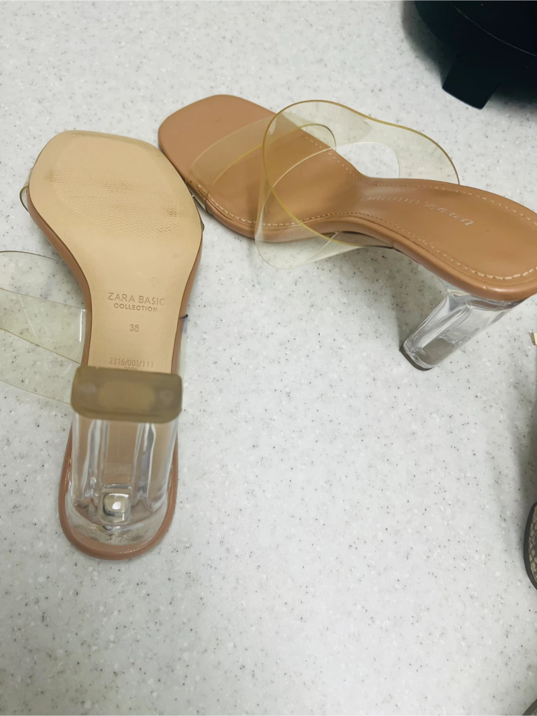 These Zara Basic Collection sandals are in great condition! They feature a clear block heel and clear straps, perfect for adding a modern touch to any outfit.