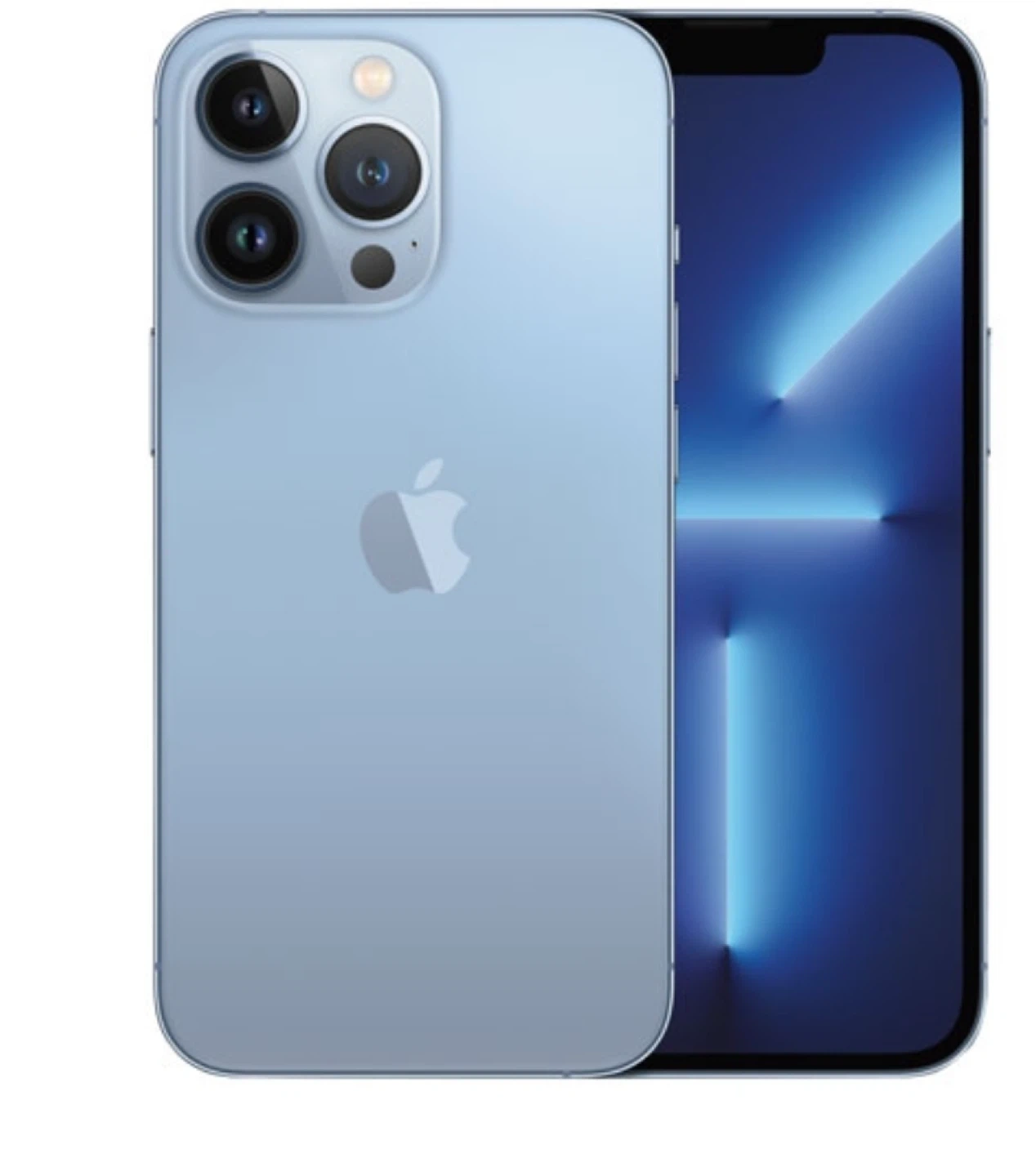 This is an Apple iPhone 13 Pro. It's in Sierra Blue. This phone features a triple-camera system.