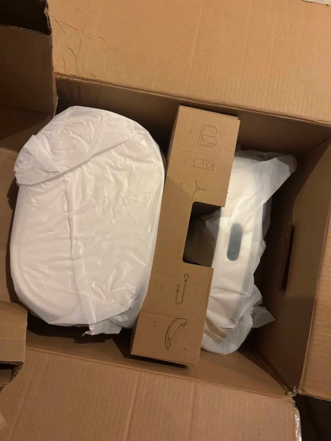 It's a white, automatic robot vacuum. Includes the docking station and vacuum unit. The original box is included.