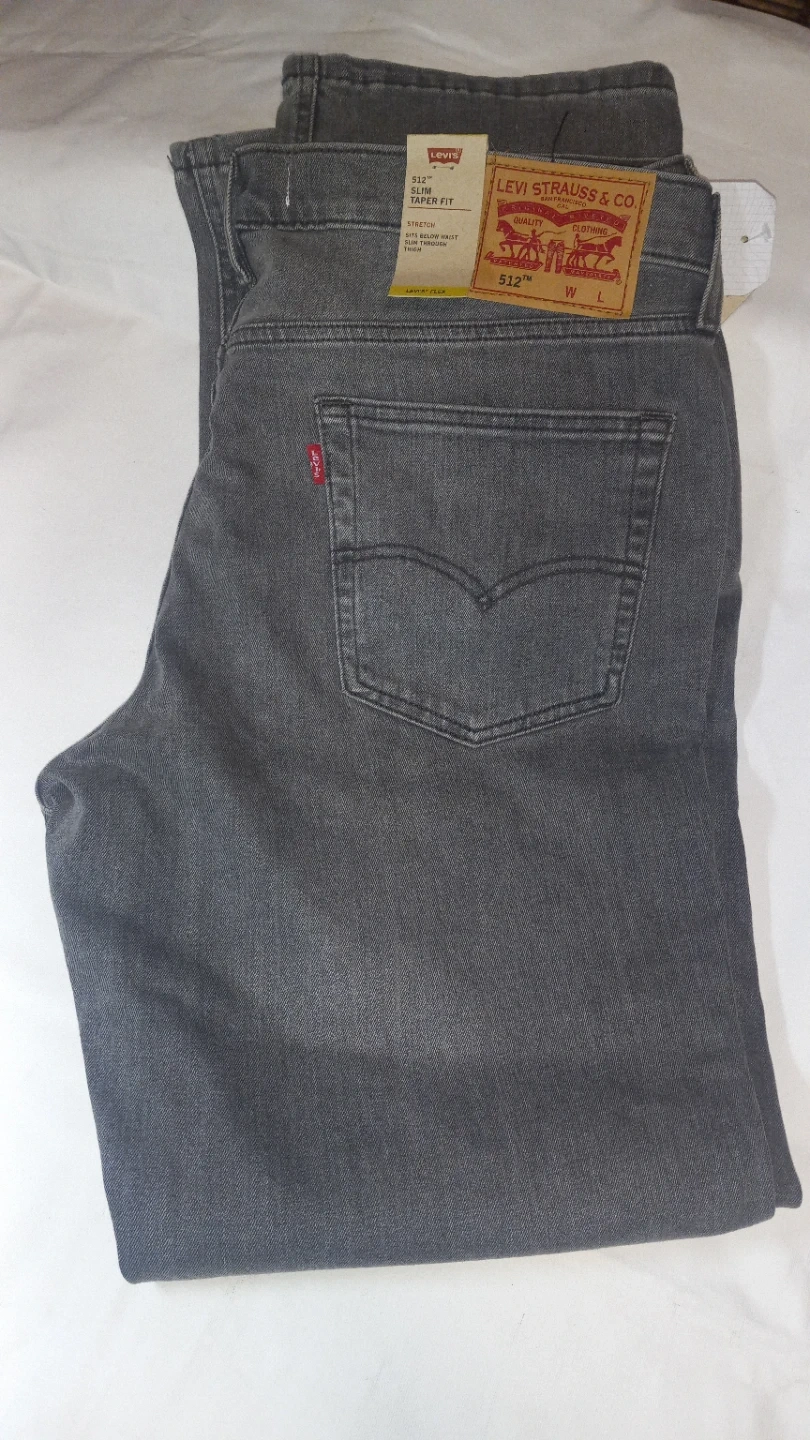 Levi's 512 jeans in a slim taper fit. Stretch denim allows for comfort and ease of movement. These jeans are grey and size W L. Perfect for everyday wear! Size 40x32 Mens