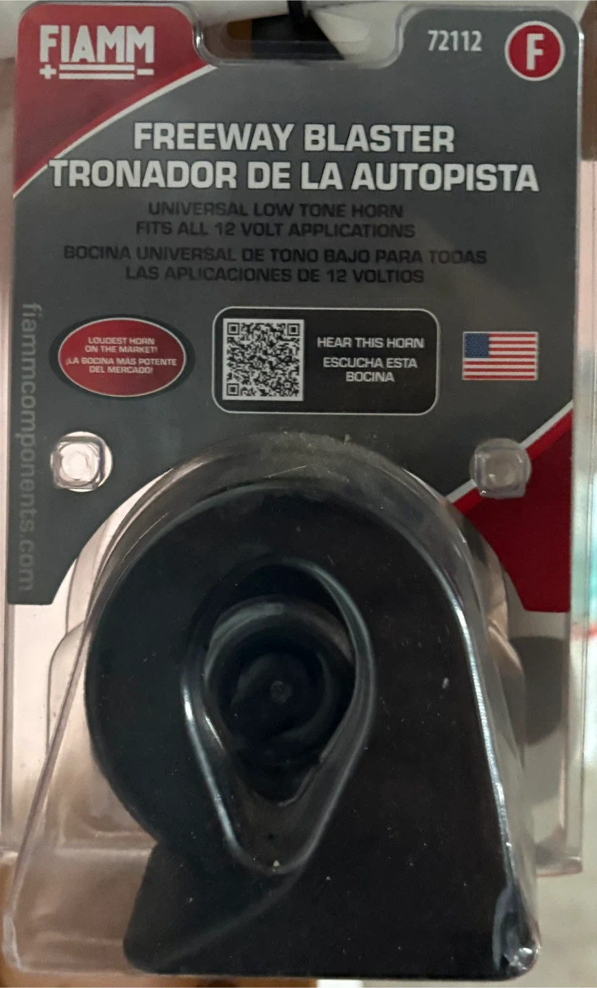 FIAMM Freeway Blaster low tone horn. Fits all 12 volt applications. It's described as the loudest horn on the market. Universal horn for all 12V vehicles.