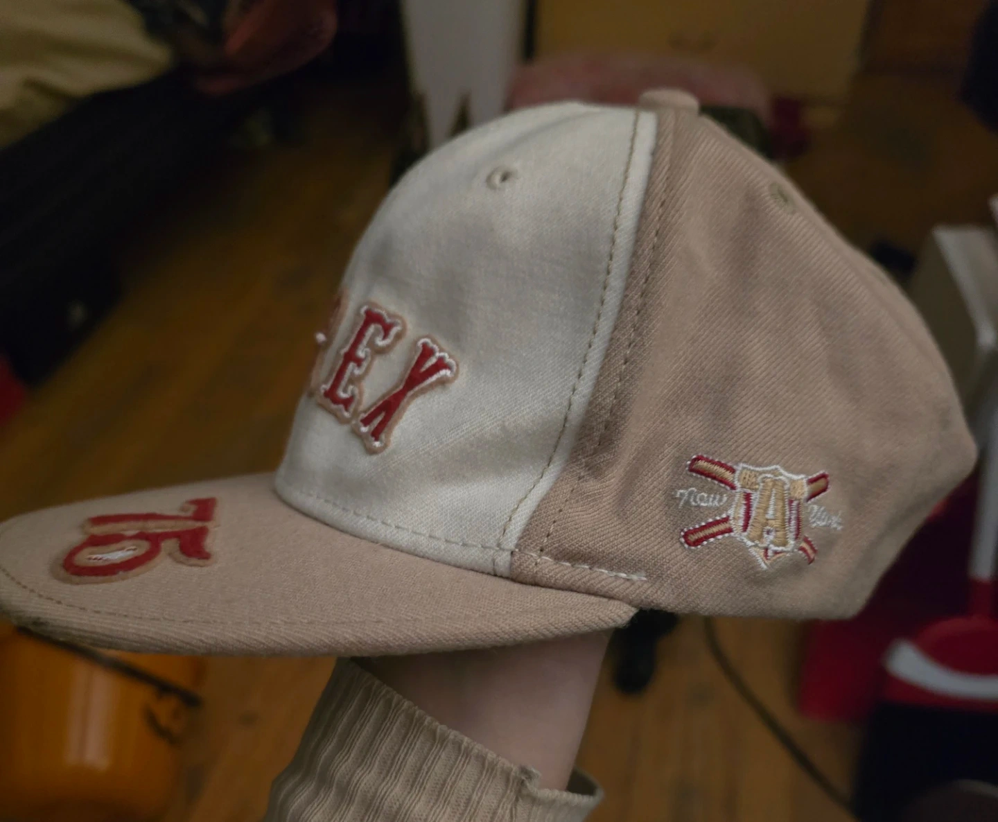 Avirex New Era 59FIFTY baseball cap! The size is 8 1/4. Beige and white color scheme with red accents.