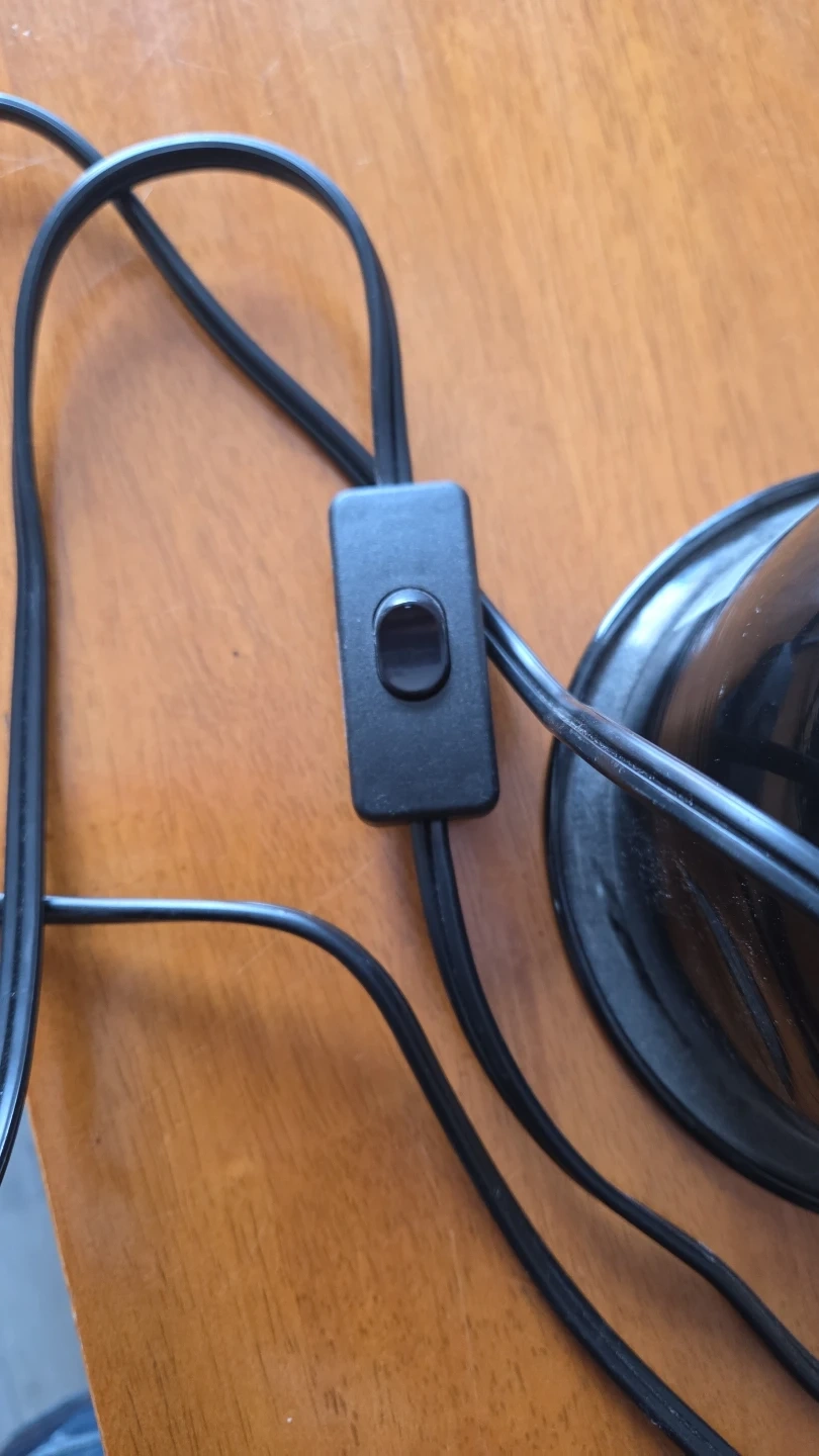 This is a black heat lamp with a built-in on/off switch on the cord. It has a ceramic socket and a metal reflector. Works great for terrariums or other heating needs! Also comes with a hanger attached!