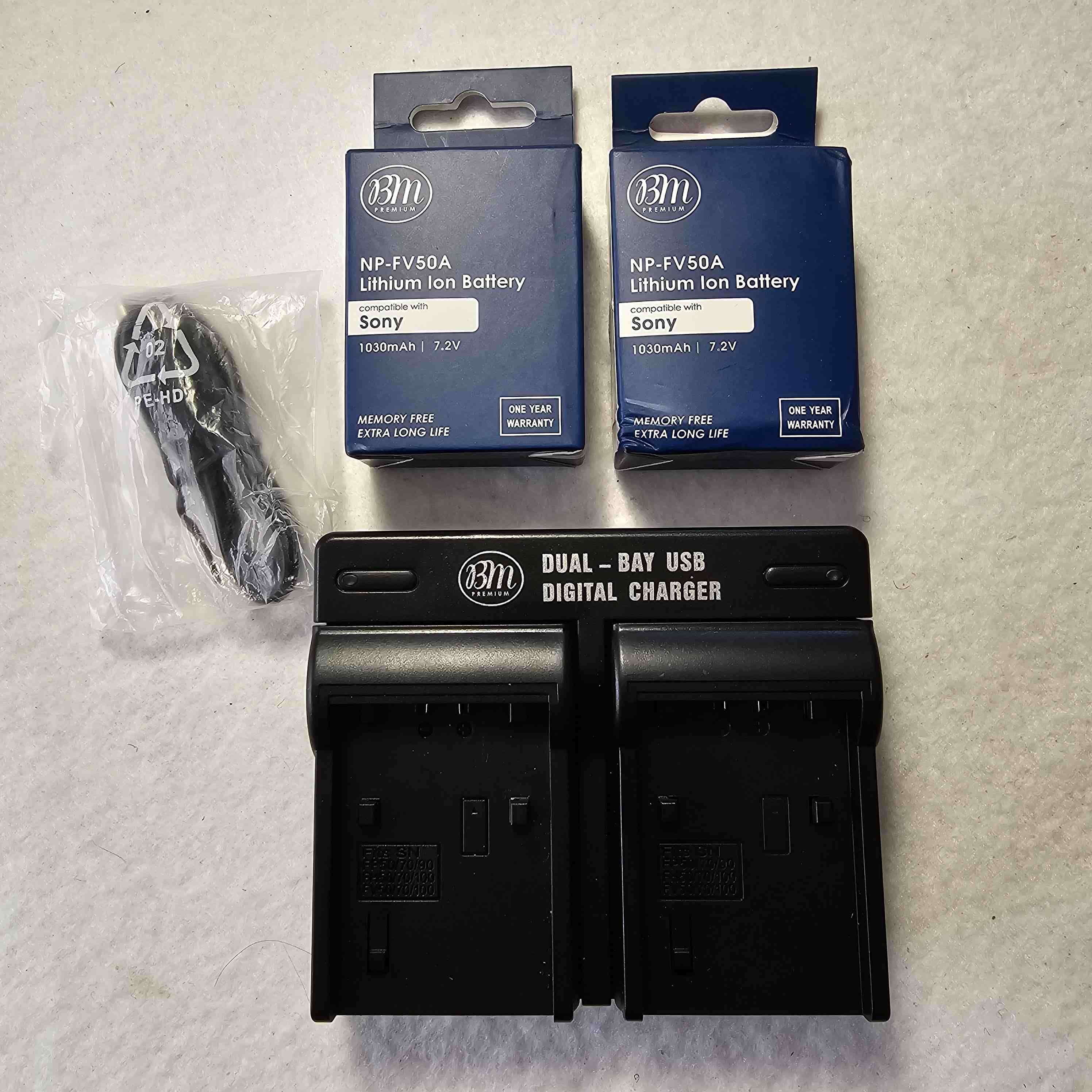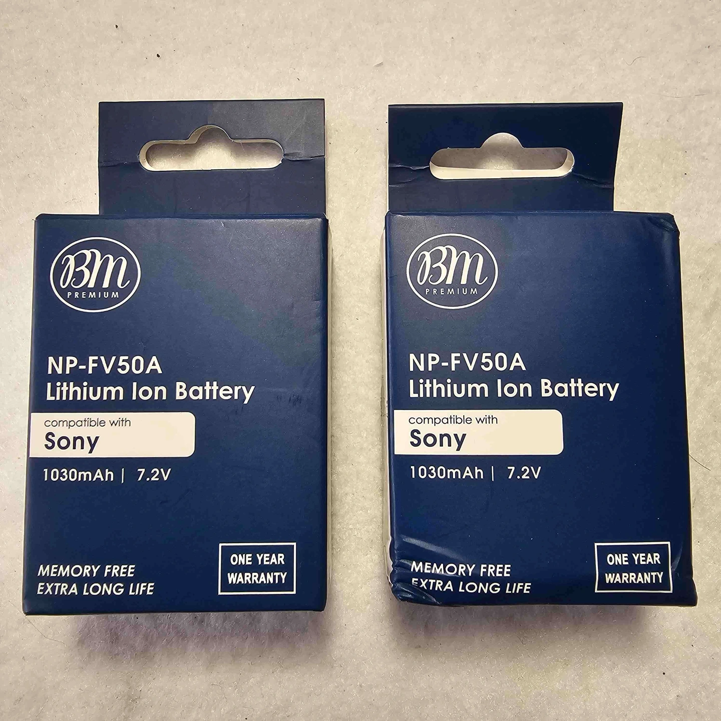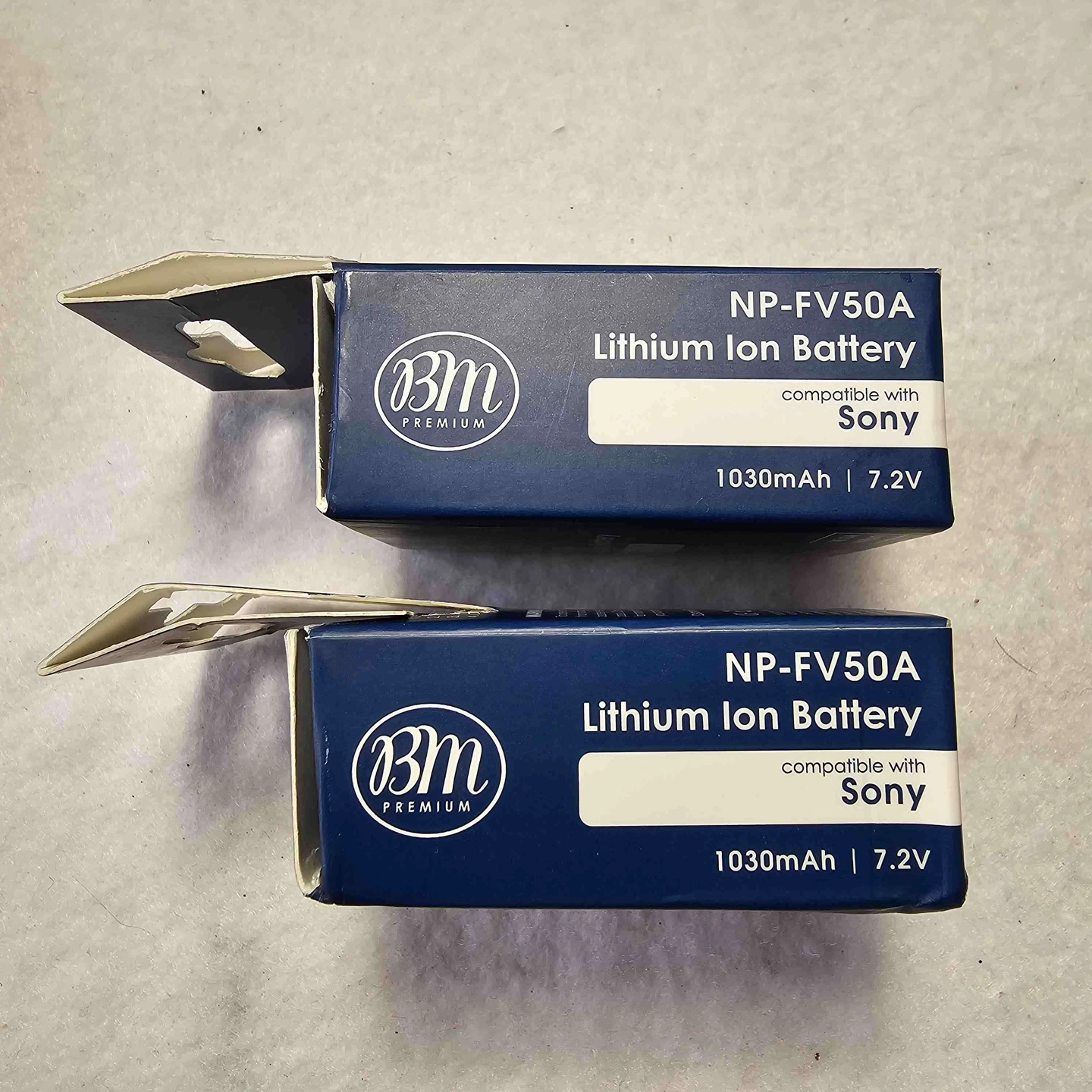 Selling my BM Premium NP-FV50A Lithium Ion Battery compatible with Sony cameras, along with a Dual-Bay USB Digital Charger. The battery has 1030mAh and 7.2V. Also included is the USB cable. Open box never used.