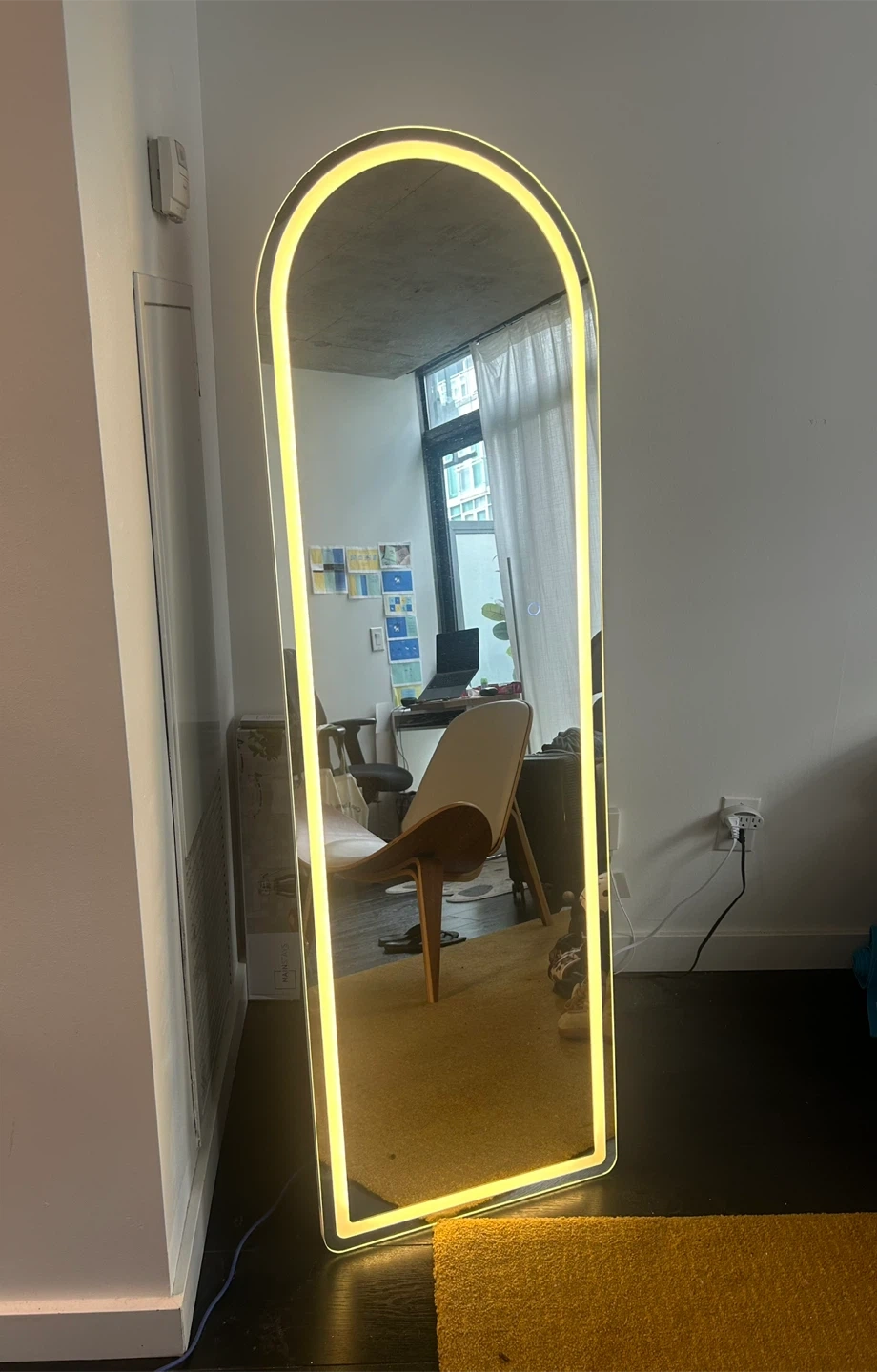 Selling a 60” tall full length mirror with LED light. It has warm and white light modes (as seen in pictures).