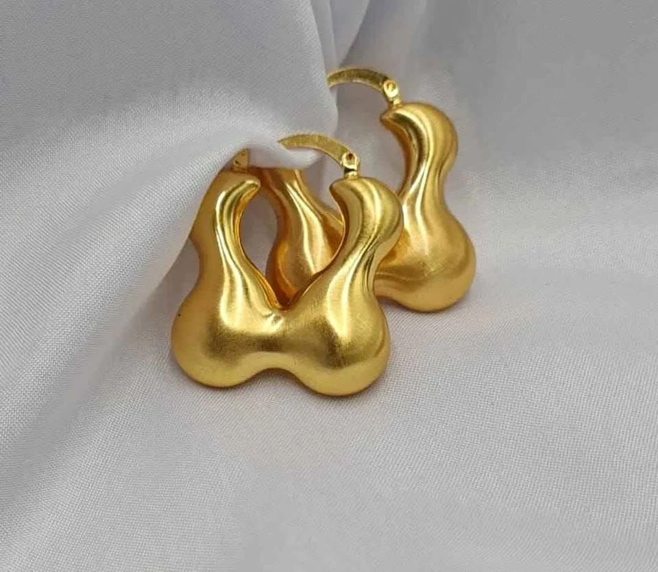 Style: chunky, sculptural statement hoops with organic, fluid silhouette