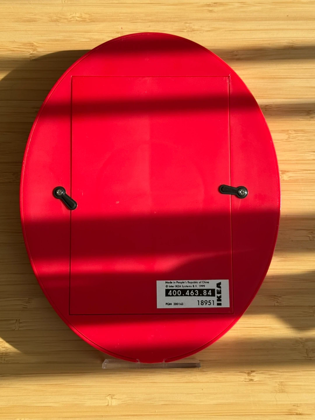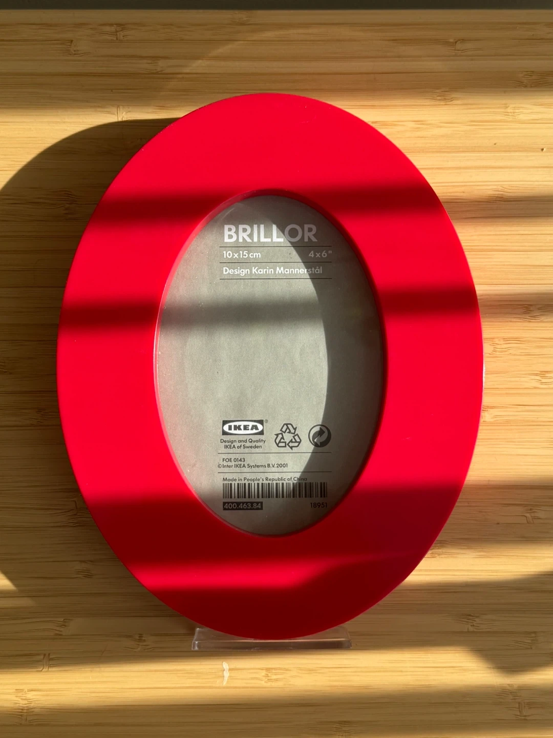 Vintage IKEA BRILLOR picture frame in red. It holds a 4x6 inch photo. The frame is made of plastic. It's designed by Karin Mannerstål.