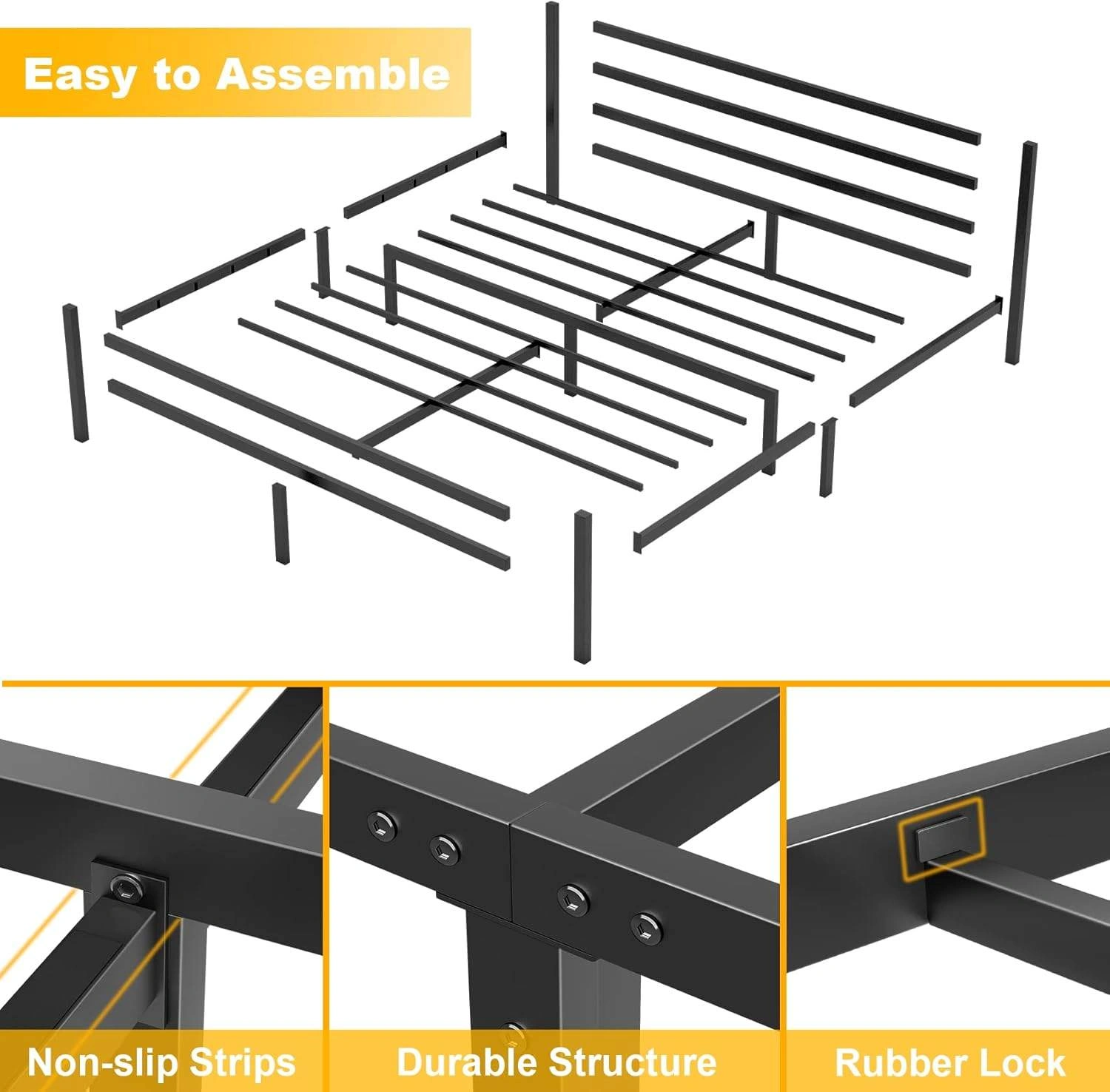 Mr IRONSTONE king bed frame with headboard is easy to assemble.