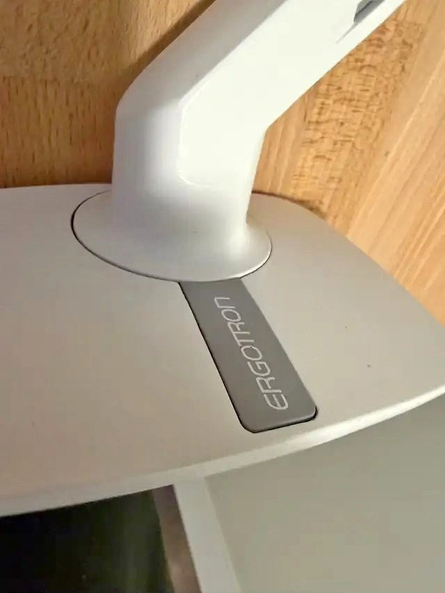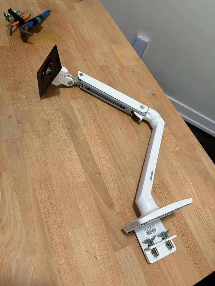 Ergotron MXV single monitor arm in excellent condition. Supports monitors up to 34” (7–20 lbs). Clean white finish with VESA desk mount.