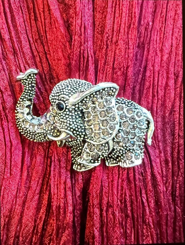 Elevate your accessory game with this stunning silver-tone elephant brooch. This is a high-quality, substantial piece featuring a "Royal Elephant" design with its trunk raised for good luck.