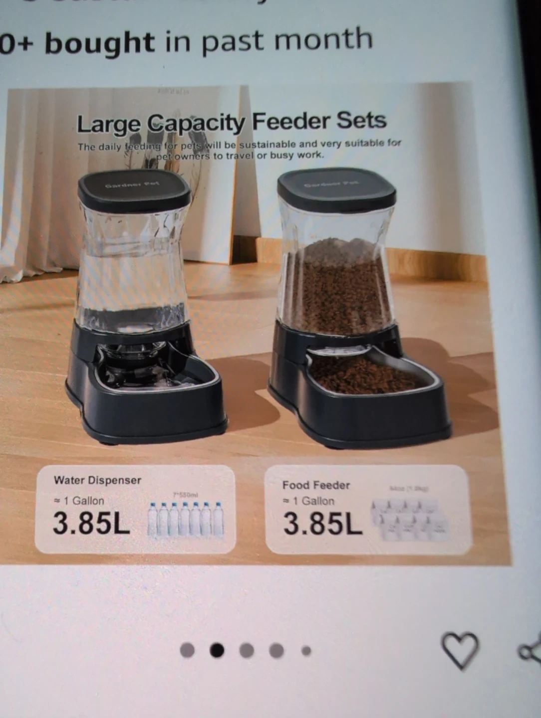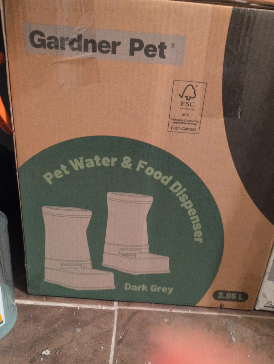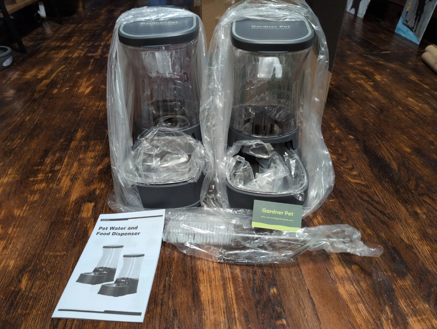 Brand new in box, Gardner Pet Water & Food Dispenser in dark grey. Both containers are 3.85 L capacity dispensers. These dispensers keeps your pet's food and water fresh. 2 pcs listed on amazon for 60.00. Similar listing on the site charging 28 and up just for water dispenser.